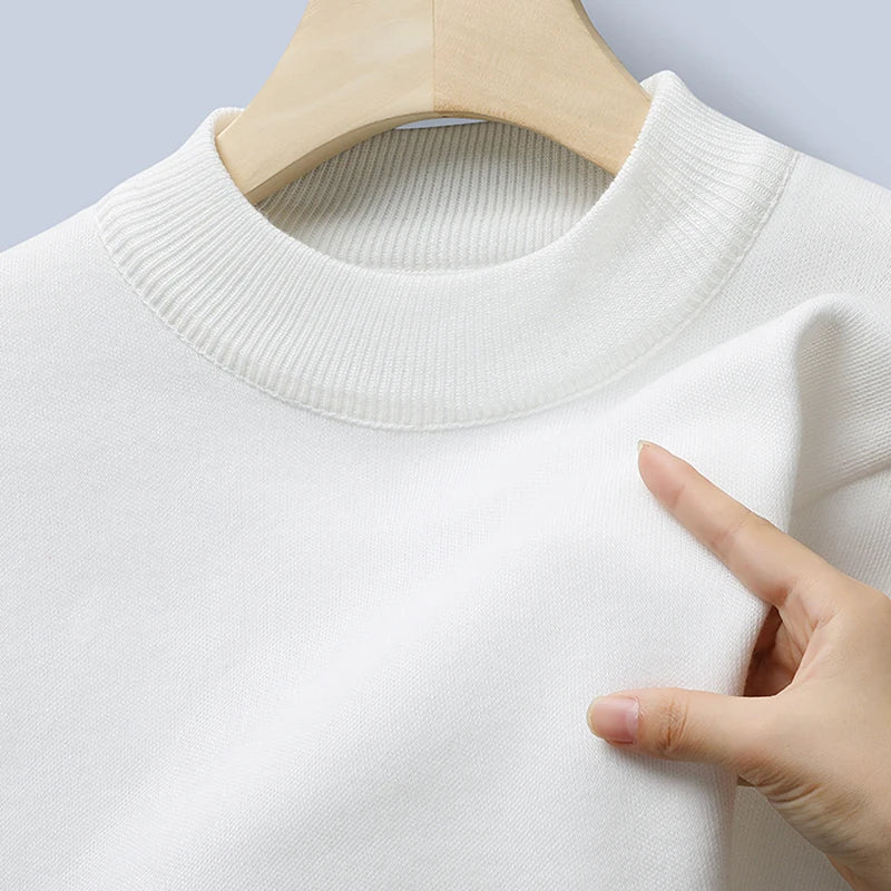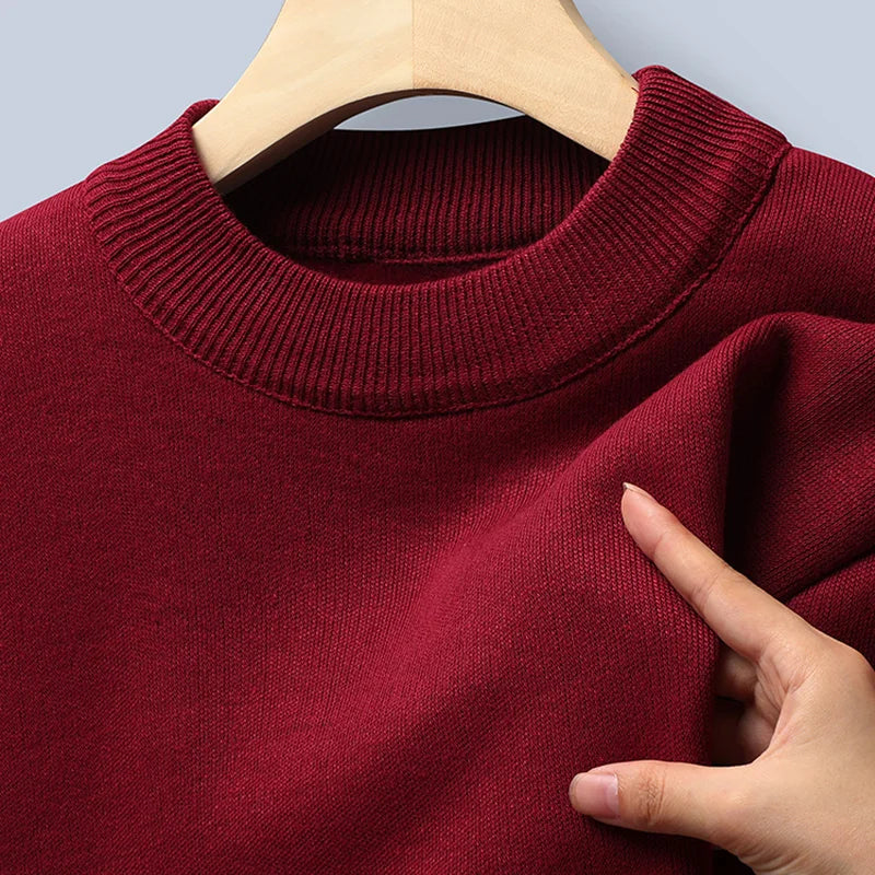 Sweater Men Autumn Winter Jumper Fleece Thickened New Korean Knitwear O-neck Solid White Black Cold Blouse Bottom Shirt Clothes