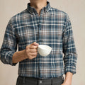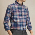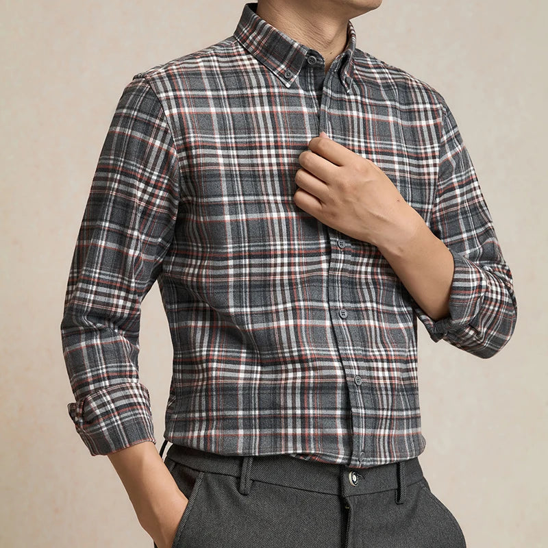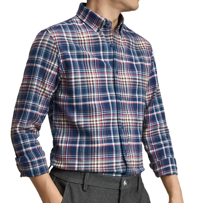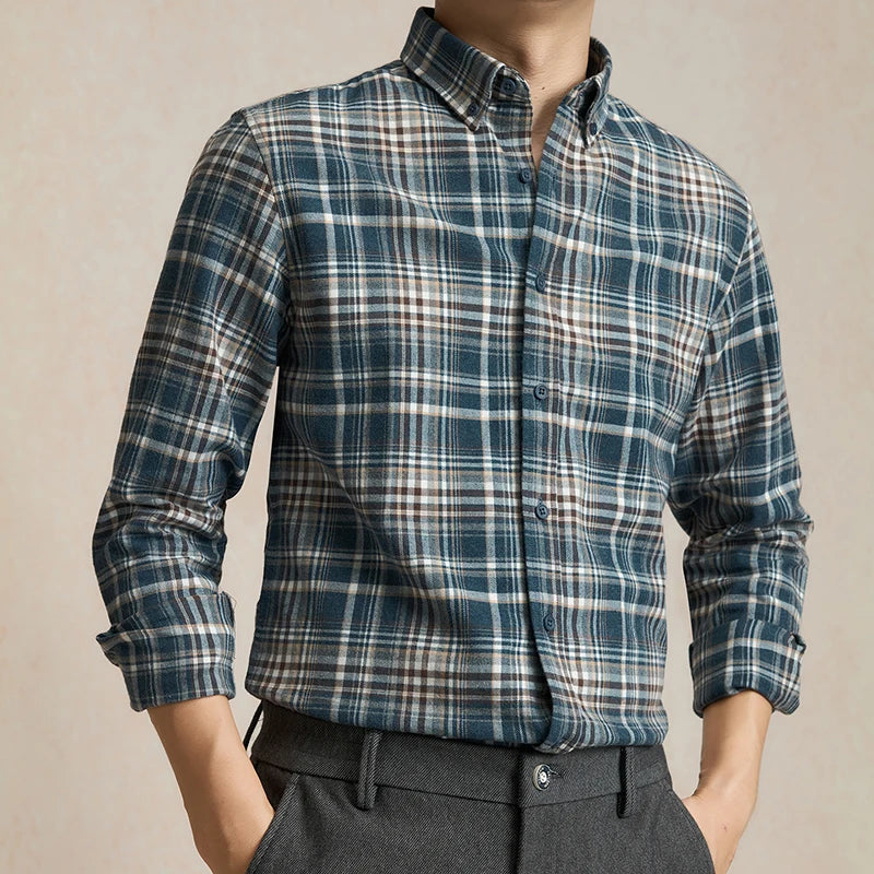 This is a high-quality, fashionable and stylish long-sleeved men's shirt with a double-sided brushed cotton check pattern, new a