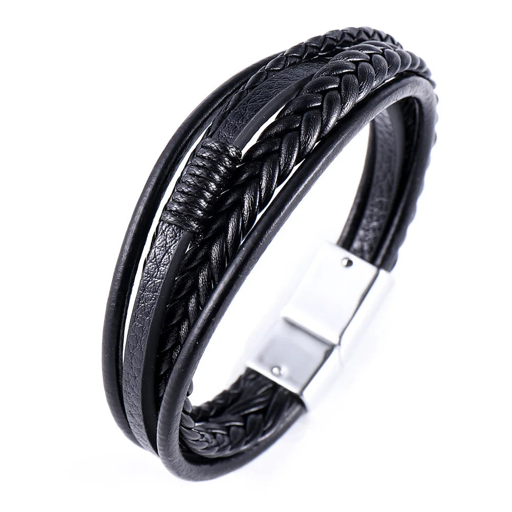 Trendy Leather Bracelets Men Stainless Steel Multilayer Braided Rope Bracelets For Male Bracelets Jewelry Pulsera Hombre