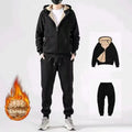 Trendy Men's Fleece-Lined Thickened Cardigan Hooded Sweatshirt Sport Suit Autumn/Winter Outdoor Casual Set