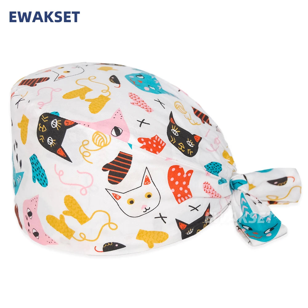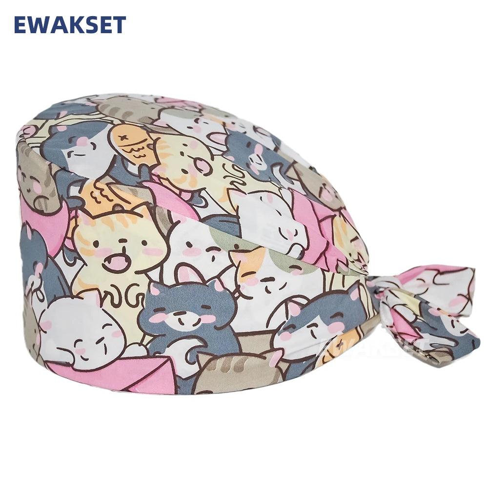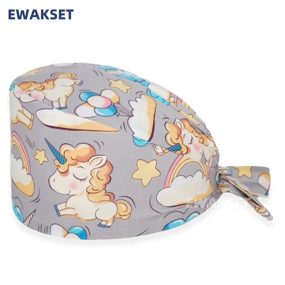 Unisex Soft Scrub Cap Cartoon Printing Scrubs Hat for women surgicals hat women's and men operating room hat Nursing accessories