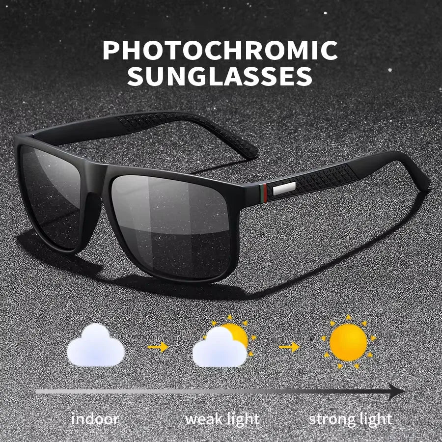 Vintage Photochromic Sports Square Sunglasses Men Women Fishing Cycling Driving Mountaineering Chameleon Glasses UV400