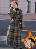 Vintage Plaid Tweed Long Woolen Coats Women Winter New Loose Wool Blend Thicken Jackets Korean Warm Cotton Padded Lined Casacos