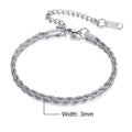 Vnox Unisex Rope Chain Bracelets for Men Women, Stainless Steel Twisted Links Chain Bracelet,Simple Classic Jewelry Gift for Him
