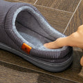 Warm Slippers for Men TPR Sole Memory Foam Soft Cushion Non Slip Stripe Design Comfortable Corduroy House Shoes