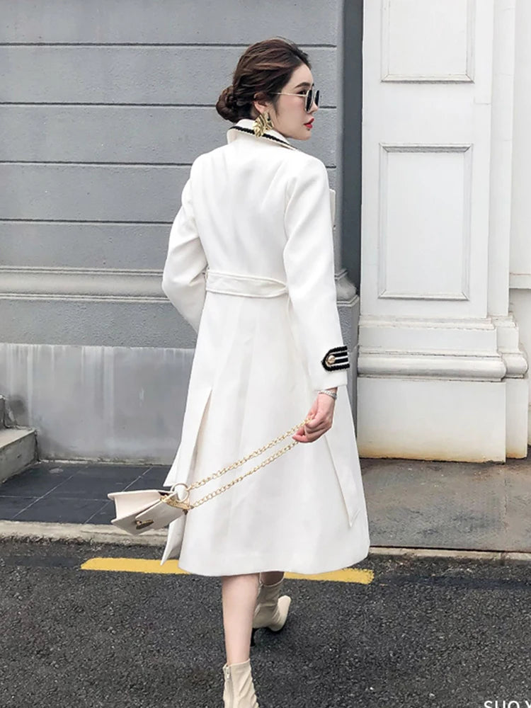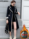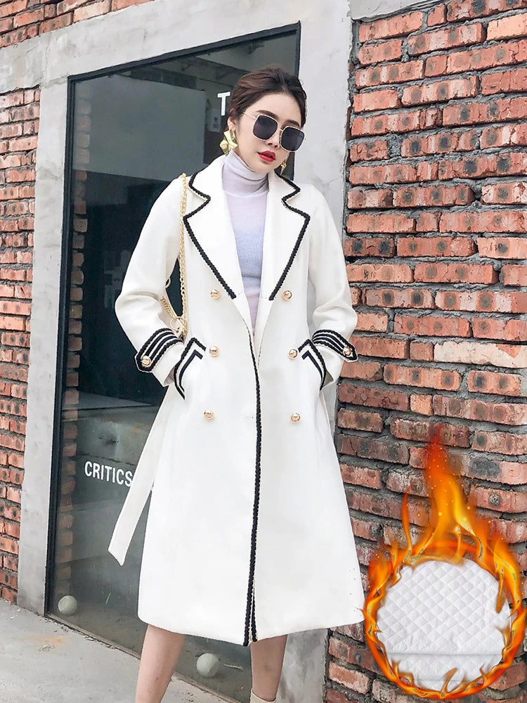 Winter Double Breasted Black Long Woolen Coats Women Thicken Slim Wool Blend Jackets Warm Cotton Padded Lined Abrigos Largos