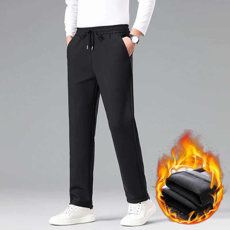 Winter Fleece Warm Thicken Pants Men Drawstring Elastic Waist Outdoors Jogging Flocking Straight Balck Grey Casual Trousers Male
