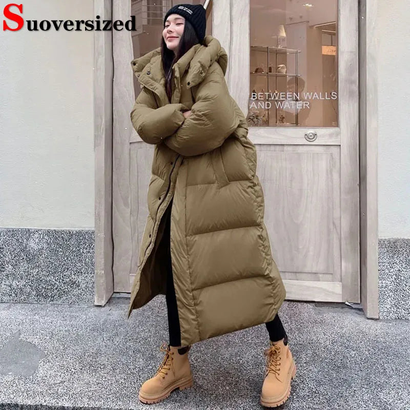 Winter Thicken Hooded Long Parkas Coats Women Casual Loose Big Size Windproof Cotton Padded Jackets Korean Snow Wear Chaquetas
