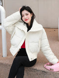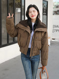 Winter Thicken Parkas Slim Short Jackets Women Korean Warm Plush Lapel Coats Casual Down Cotton Oversized Pink Crop Chaquetas