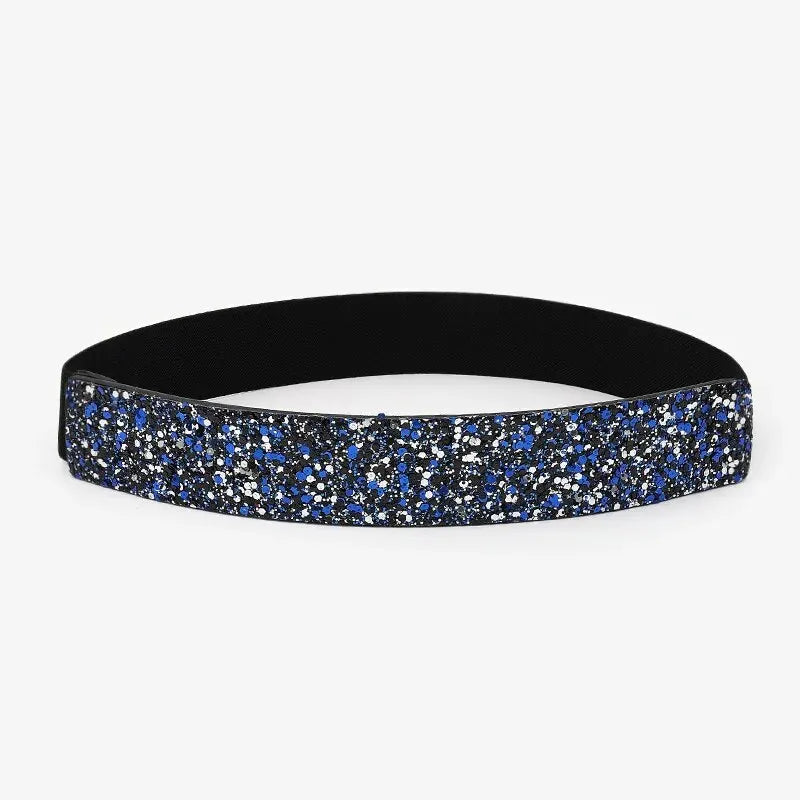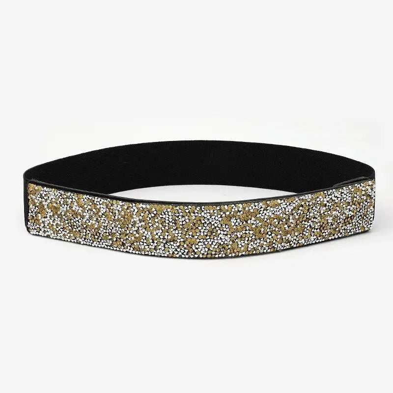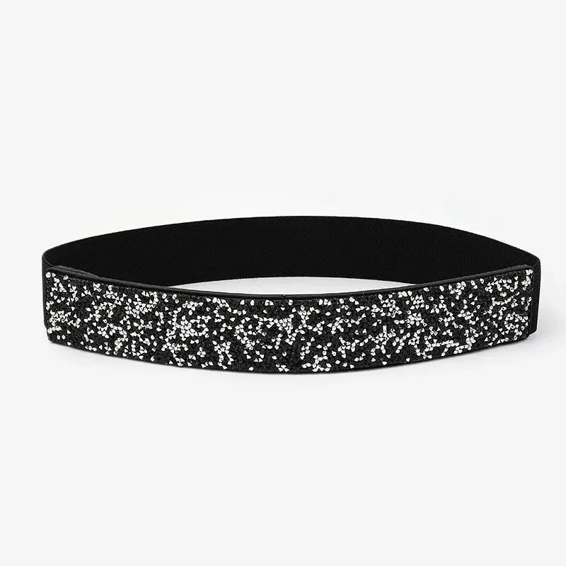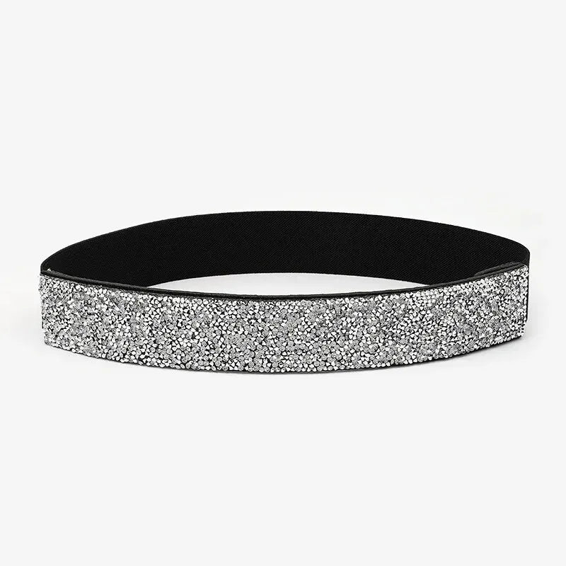 Women Belt Rhinestone Inlaid Elastic Waistband Sparkling Fashion Crystal Waist Cover Elastic Waist Closure Wide Belts With Dress