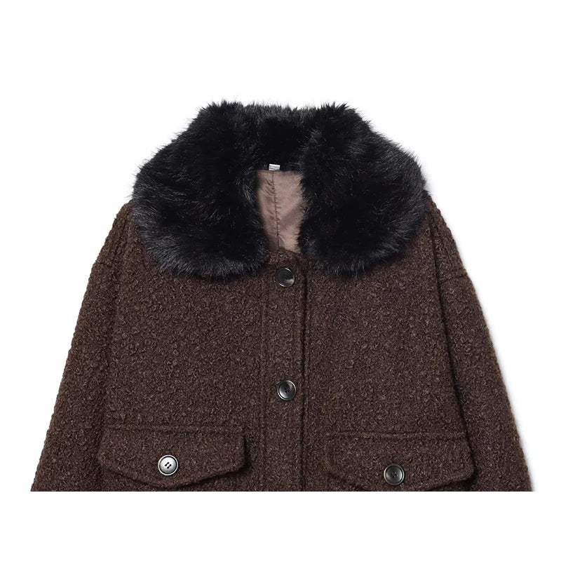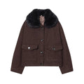 Women Faux Fur Lapel Jacket 2025 Autumn Winter Women's Coat Long Sleeve Loose Female Streetwear Casual New Outerwear