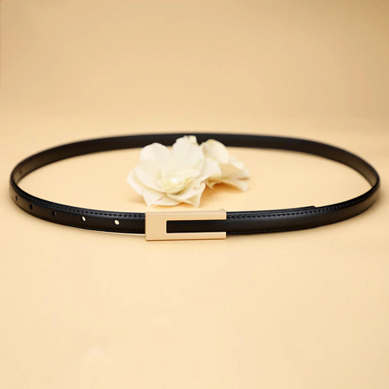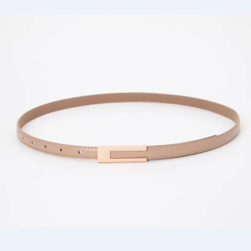 Women Korean Fashionable PU Leather Thin Waist Strap Metal Accessories Basic Belt Women Casual Porous Adjustable Fashion Belts
