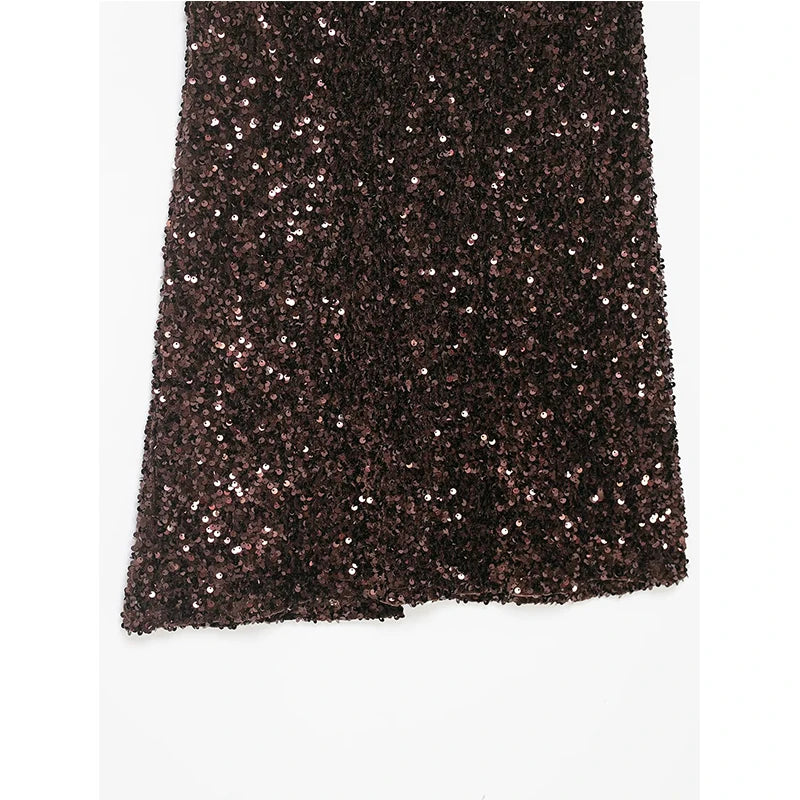 Women Sequin Midi Skirt Elegant Long Skirts 2026 New Fashion Shining Lady Spring Summer Evening Party Skirts Mujer