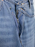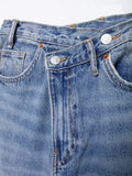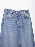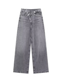 women's asymmetric design high-waisted wide-legged jeans new basic models versatile fashion straight trousers trousers