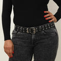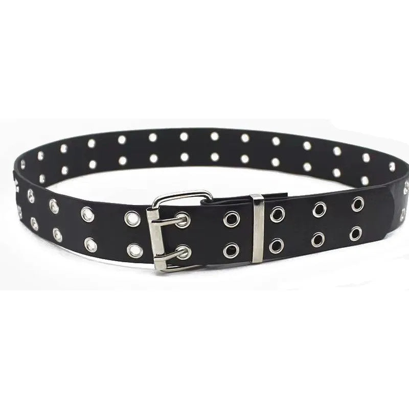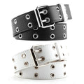 Women's Belt Trend Double Ring Belt Double Hole Eyelet Grommet Leather Buckle Punk Pin Belt Leisure Dress Jeans Gothic Waistband