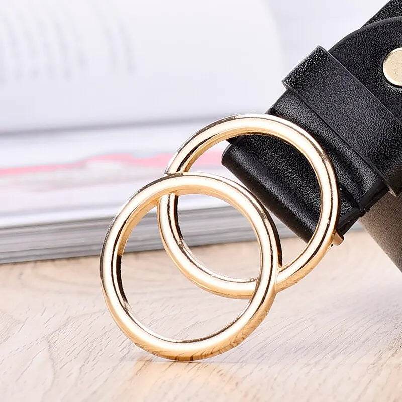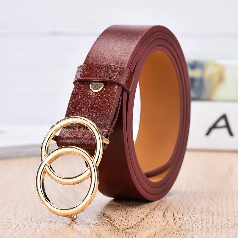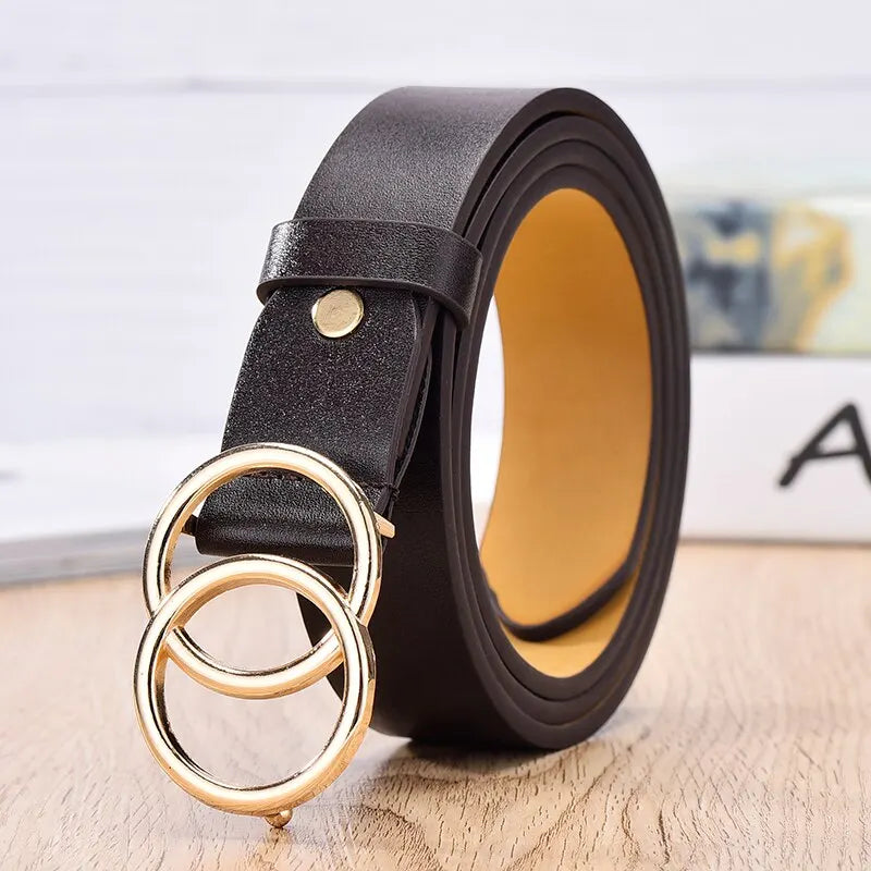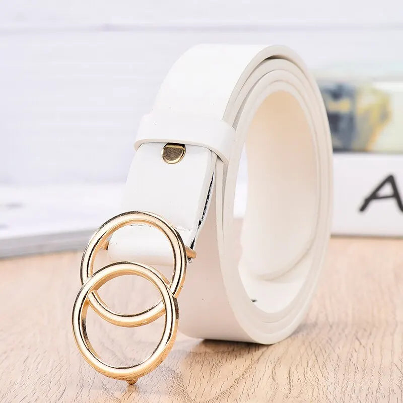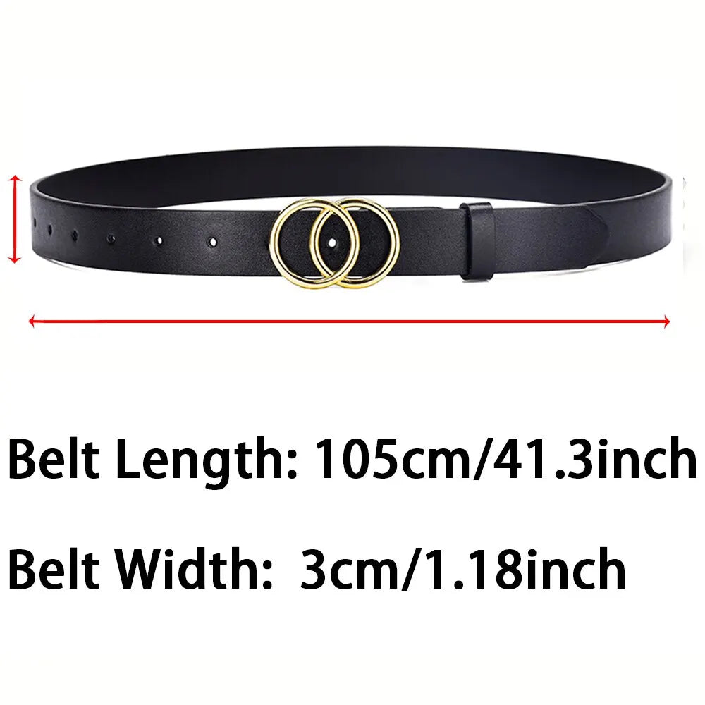 Women's Belt Trend Double Round Buckle Belt Simple And Versatile Youth Belt Pu Leather Belt Paired With Jeans Skirt Women Belt