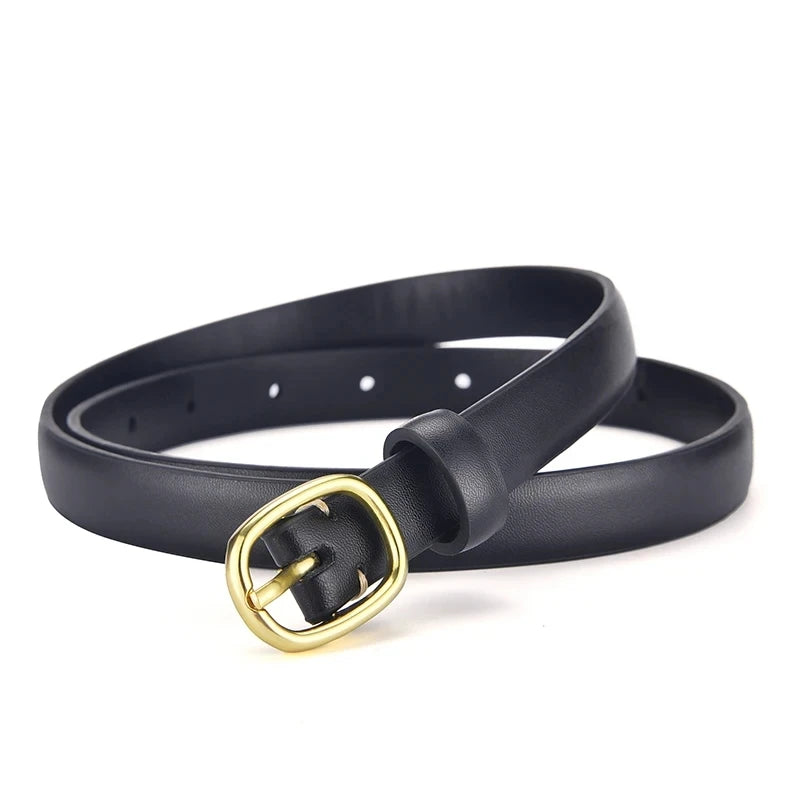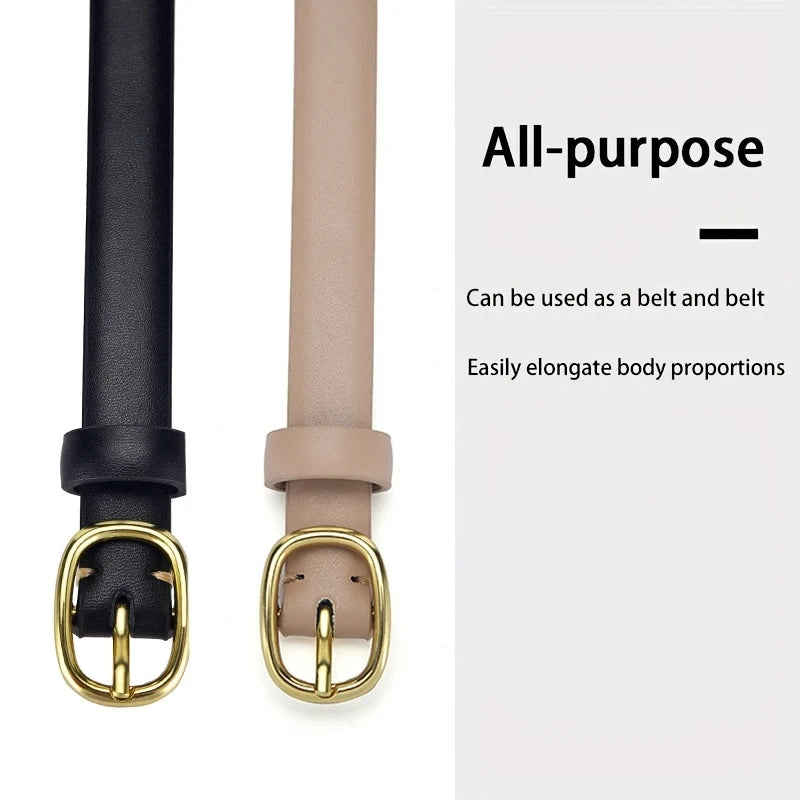 Women's Belt Trend Gold Buckle Belt Fashion Casual Versatile Thin Belt Soft PU Leather Belt Jeans Belt Gift for Mom Girlfriend