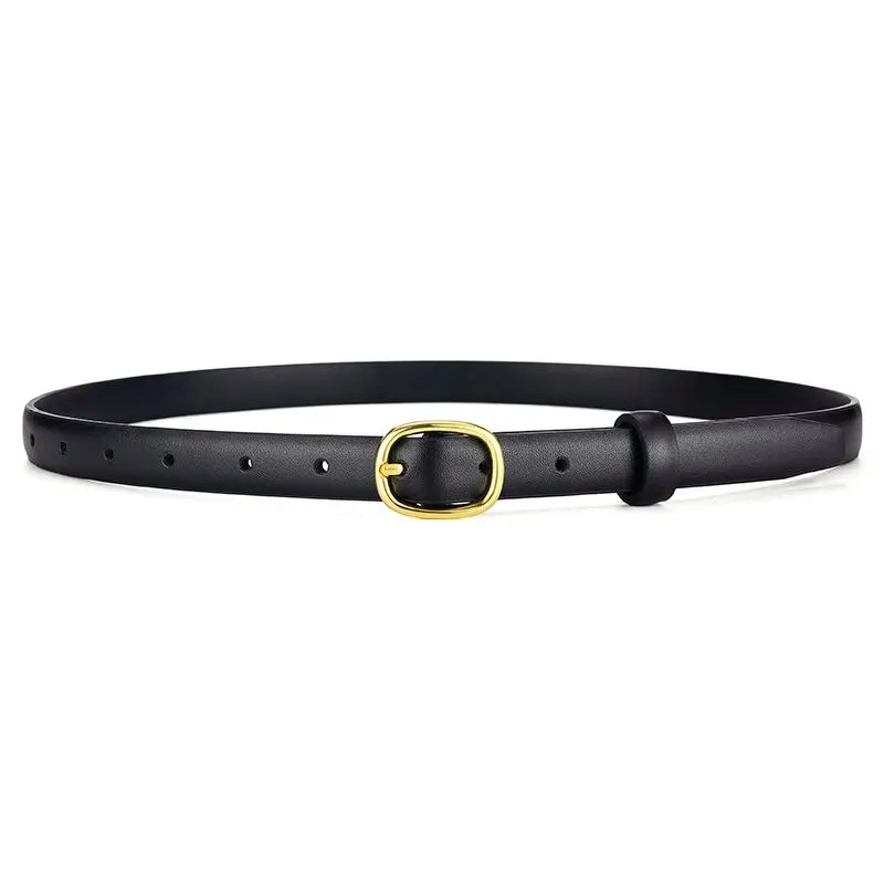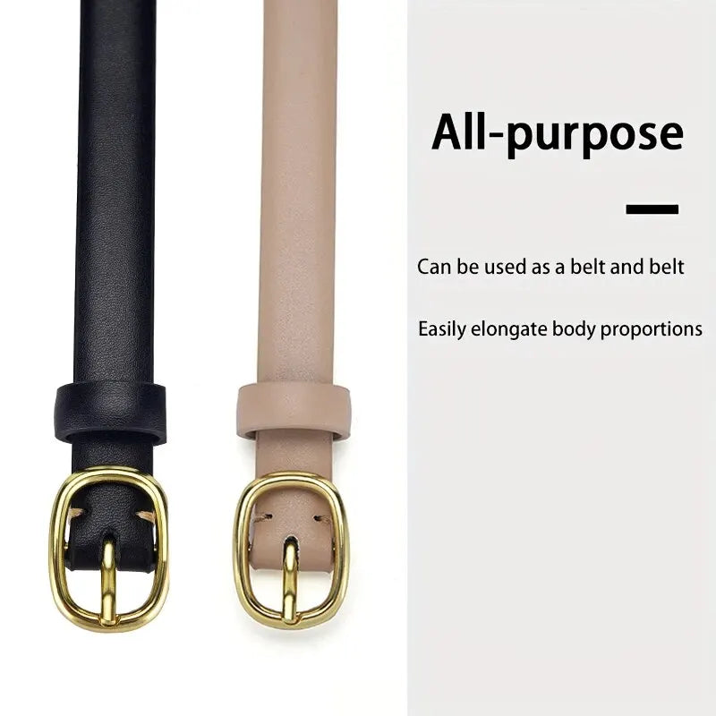 Women's Belt Trend Gold Buckle Belt Fashion Casual Versatile Thin Belt Soft PU Leather Belt Jeans Belt Gift for Mom Girlfriend