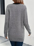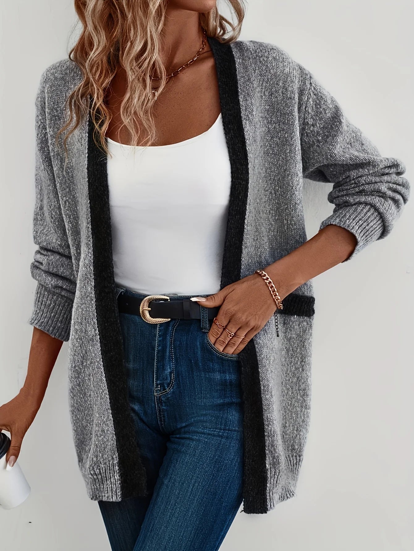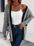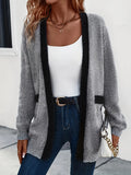 Women's casual fake pocket contrasting color placket long sleeved woolen cardigan jacket