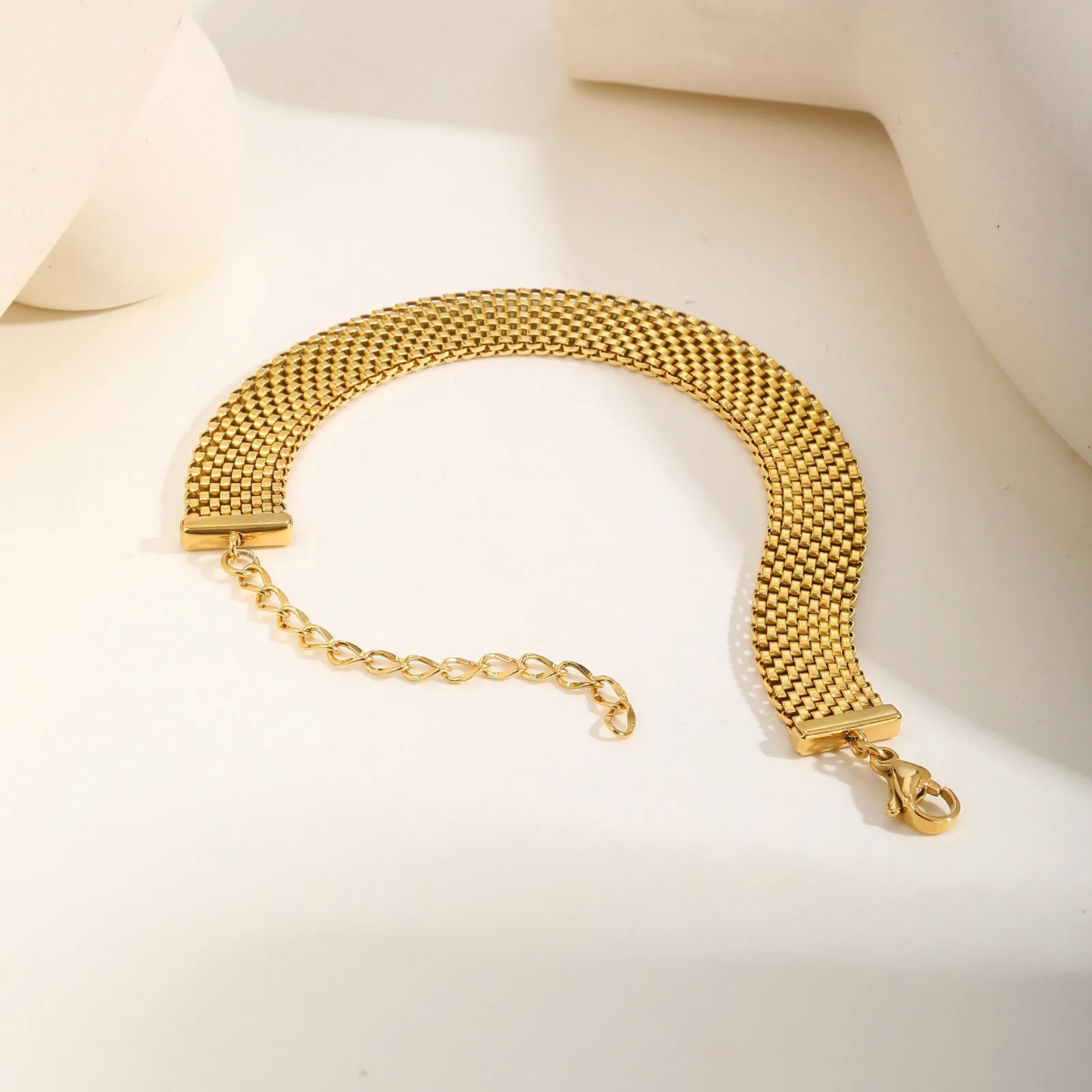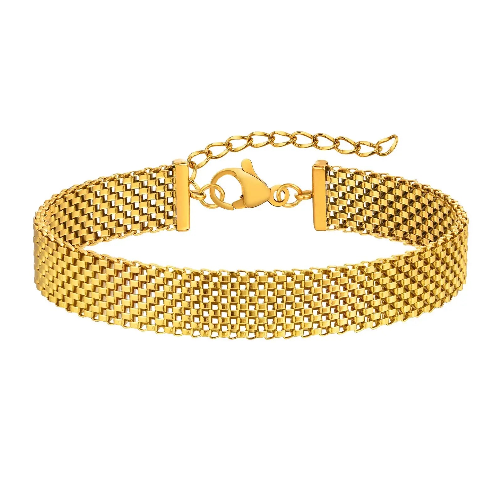 Women's Chunky Link Chain Mesh Bracelet, Stainless Steel Gold Plated Waterproof Jewelry