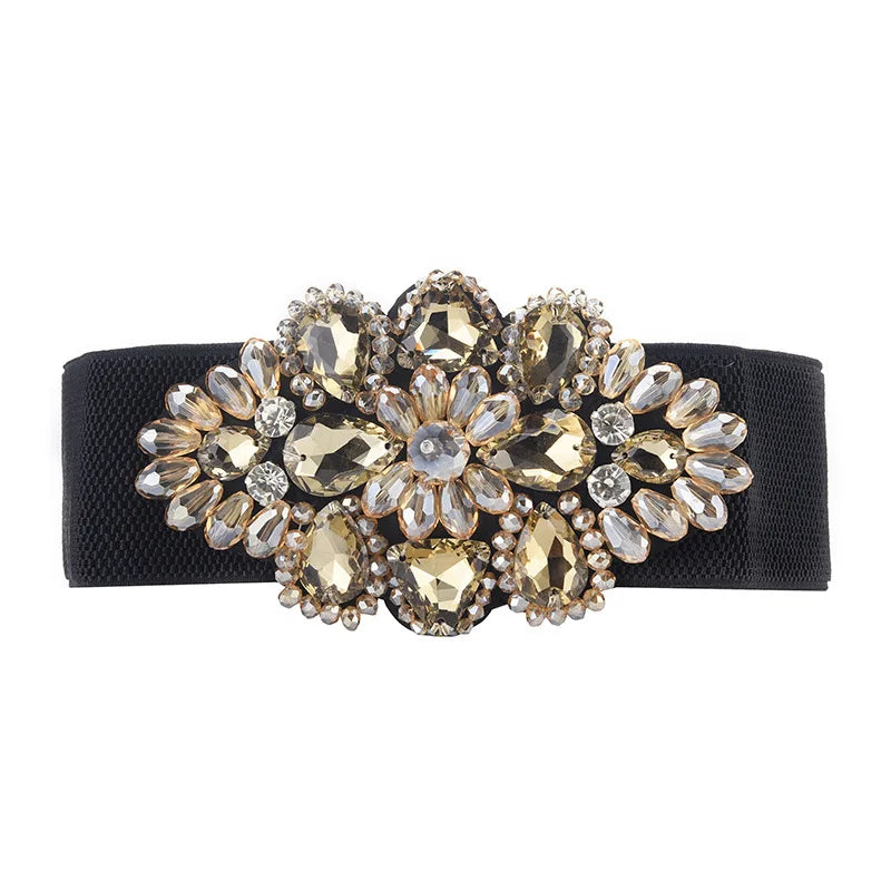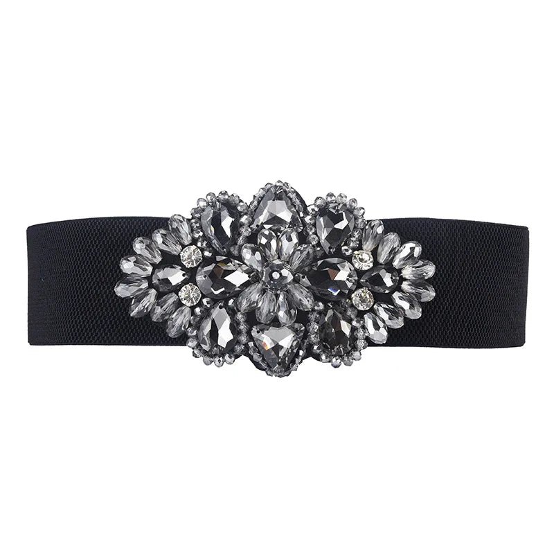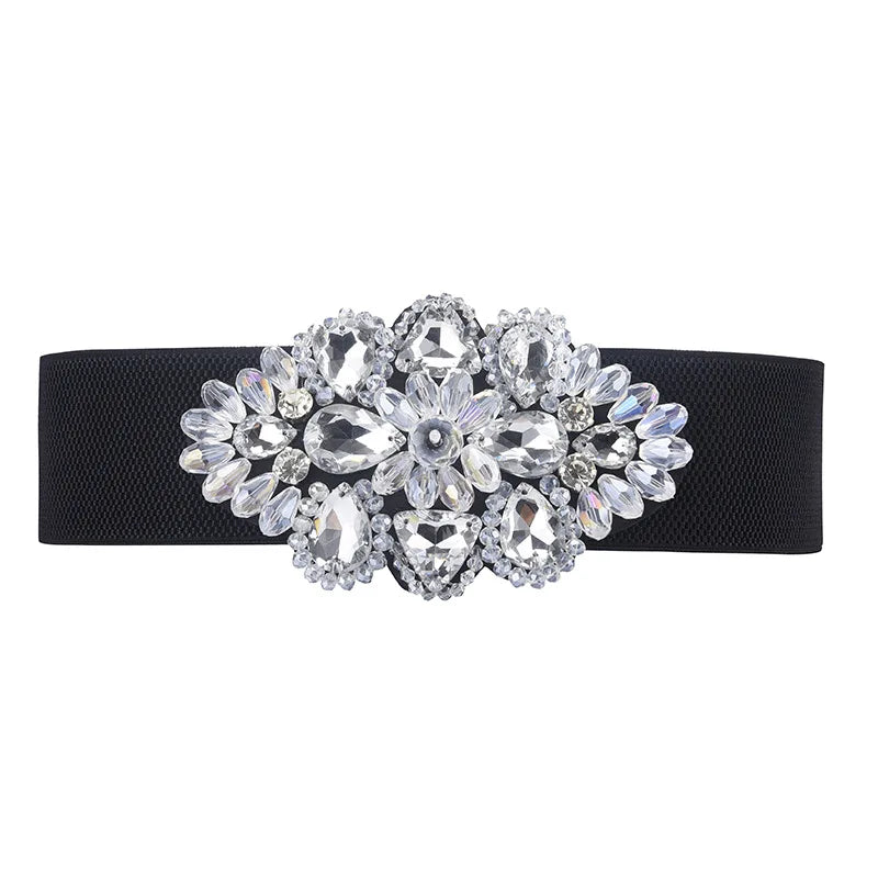 Women's Crystal Buckle Belt,With Skirts Elastic Wide Waist Cover Woman Fashion Versatile Decoration Elastic Belt,For Ideal Gifts