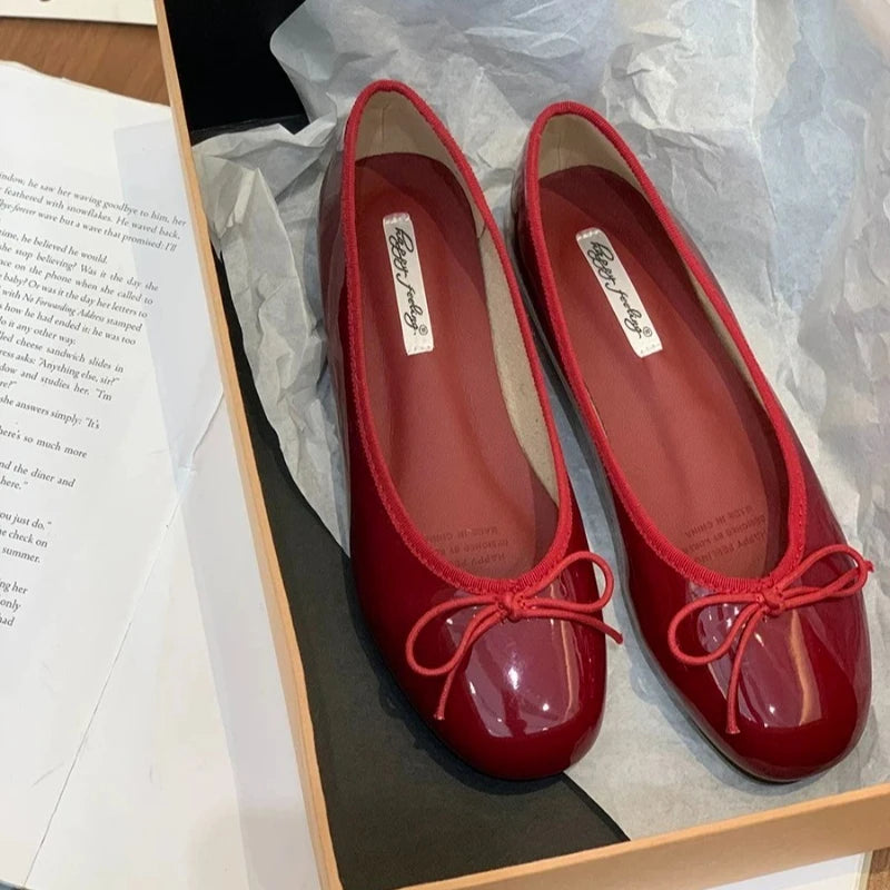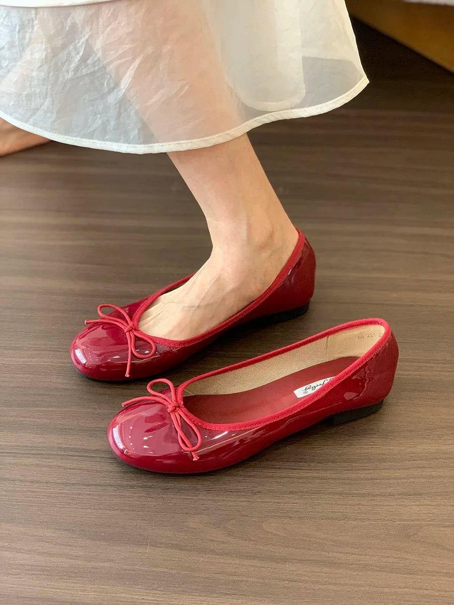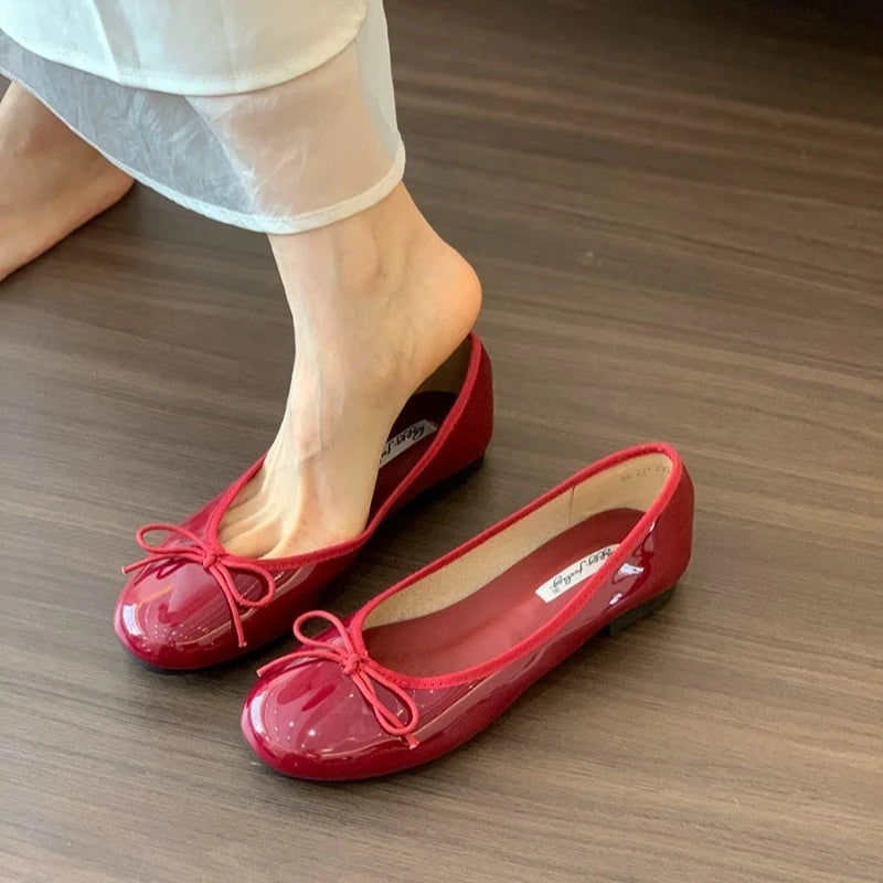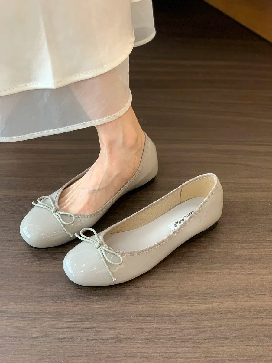Women's fashion bow flat shoes spring and autumn new style French retro shallow opening single shoes for women.