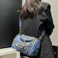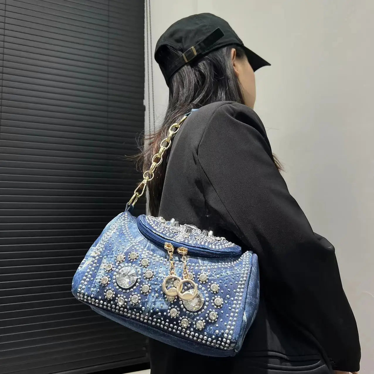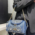 Women's Fashion Diamond Elegant Handbag Mini Flap Diamond Denim Shoulder Bag