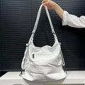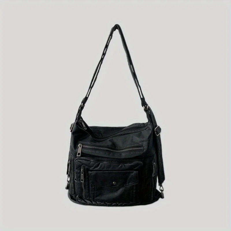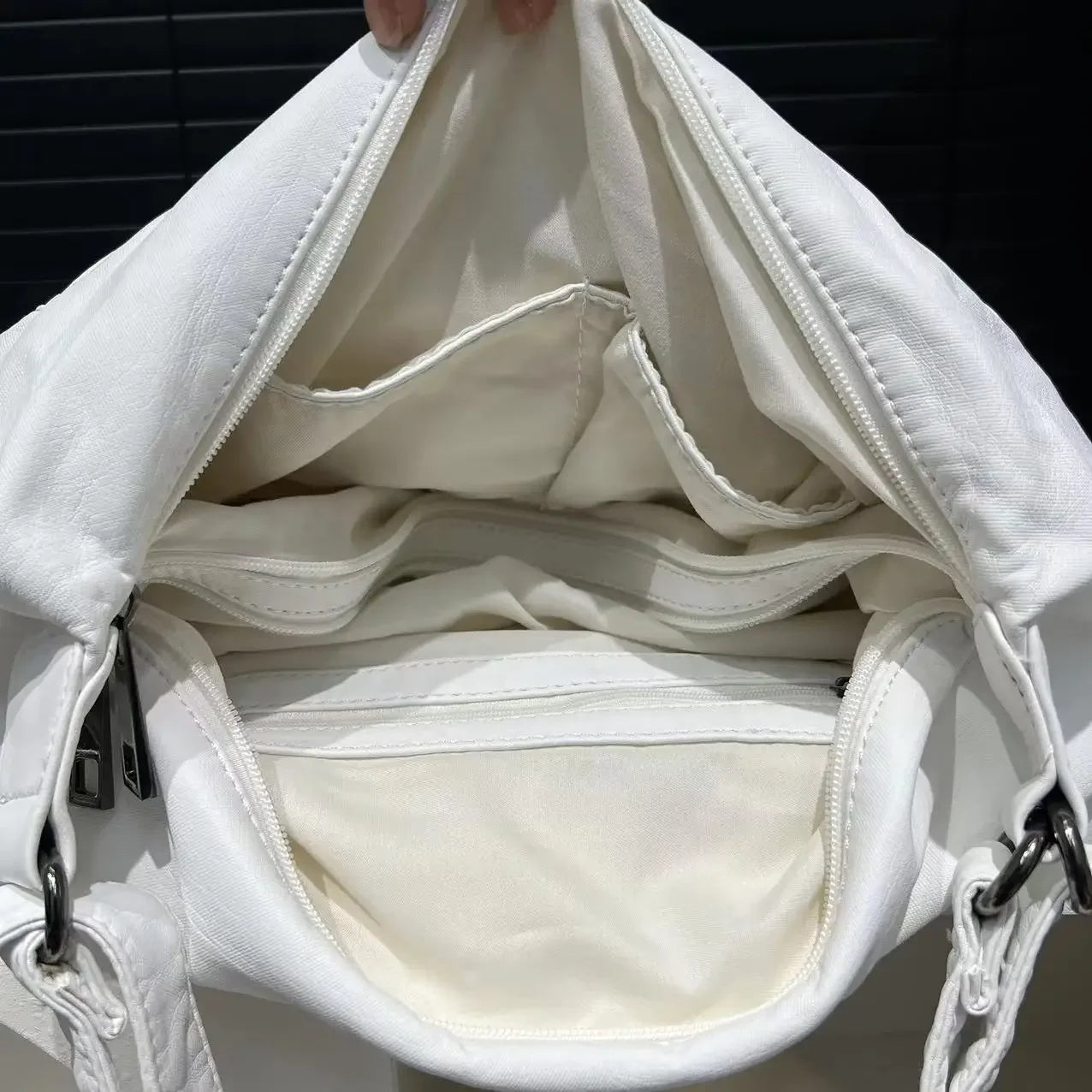 Women's Fashion Multi-Pocket Motorcycle Shoulder Bag Large Capacity Retro Washed Crossbody Backpack