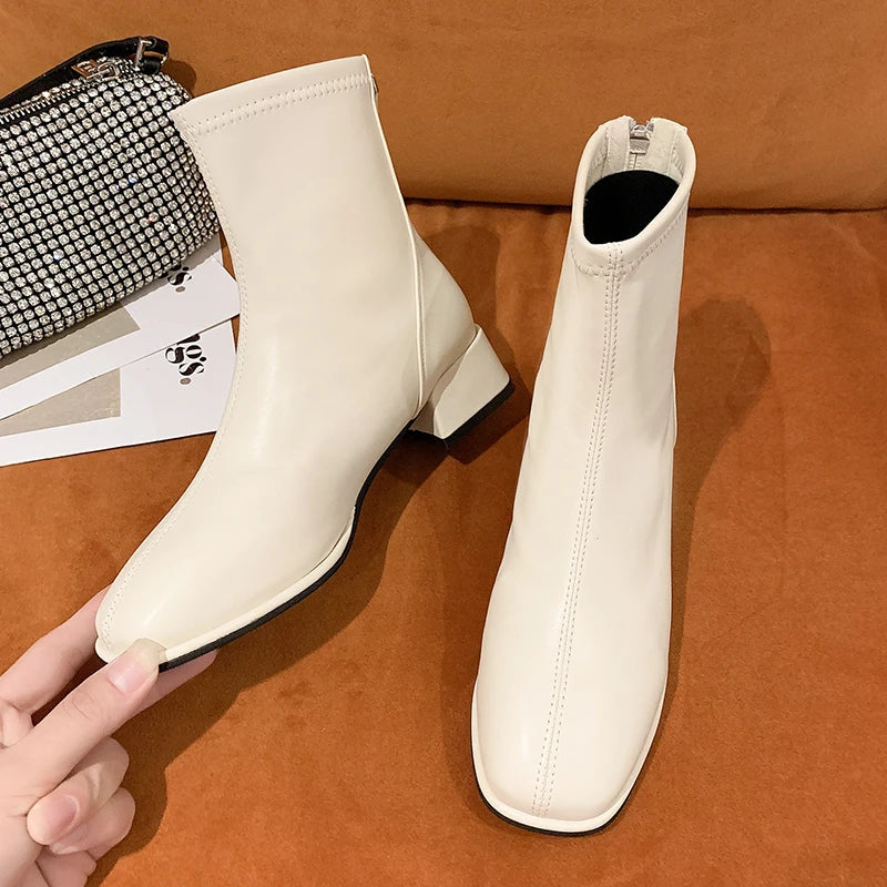 Women's fashion thick-heeled ankle boots, soft leather, new autumn and winter style, versatile and warm fashion boots 2025