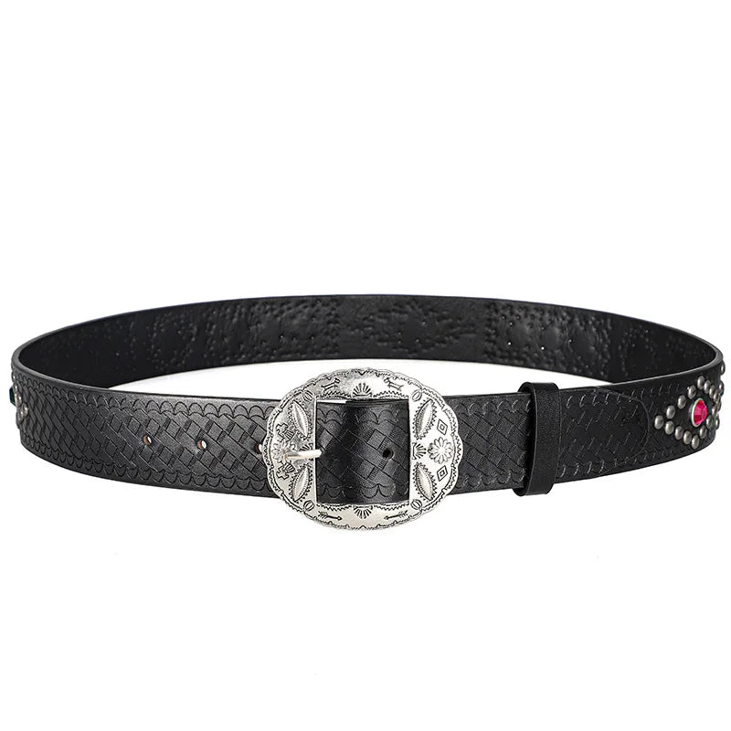 Women's Fashion Vintage Carved Buckle Sparkling Belt Western Denim Shiny Rivet Designer Rhinestone Accessory Belts,For Men Women