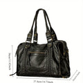 Women's Fashion Vintage Washed Soft Leather Tote Bag Large Capacity Commuter Multi-Pocket Shoulder Messenger Bag