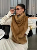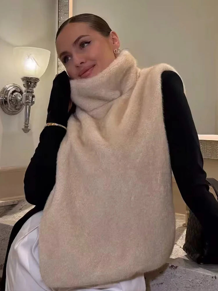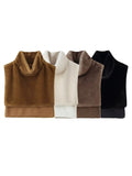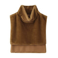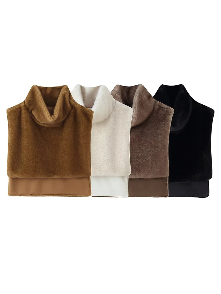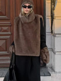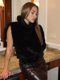 Women's Faux Fur Vest Crop Top Women Fashion Turtleneck Fluffy Short Tank Tops 2025 Winter Female Elegant Sleeveless Jacket Coat