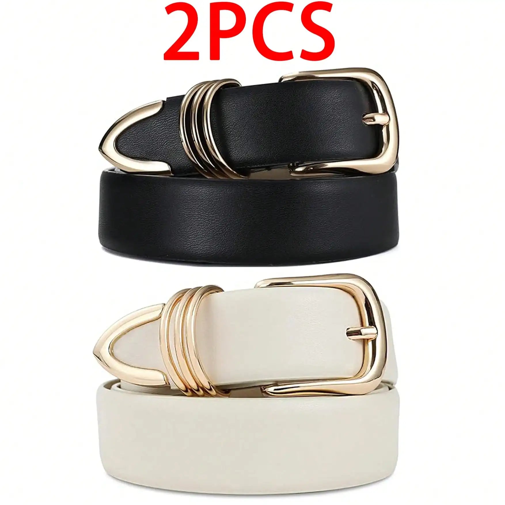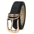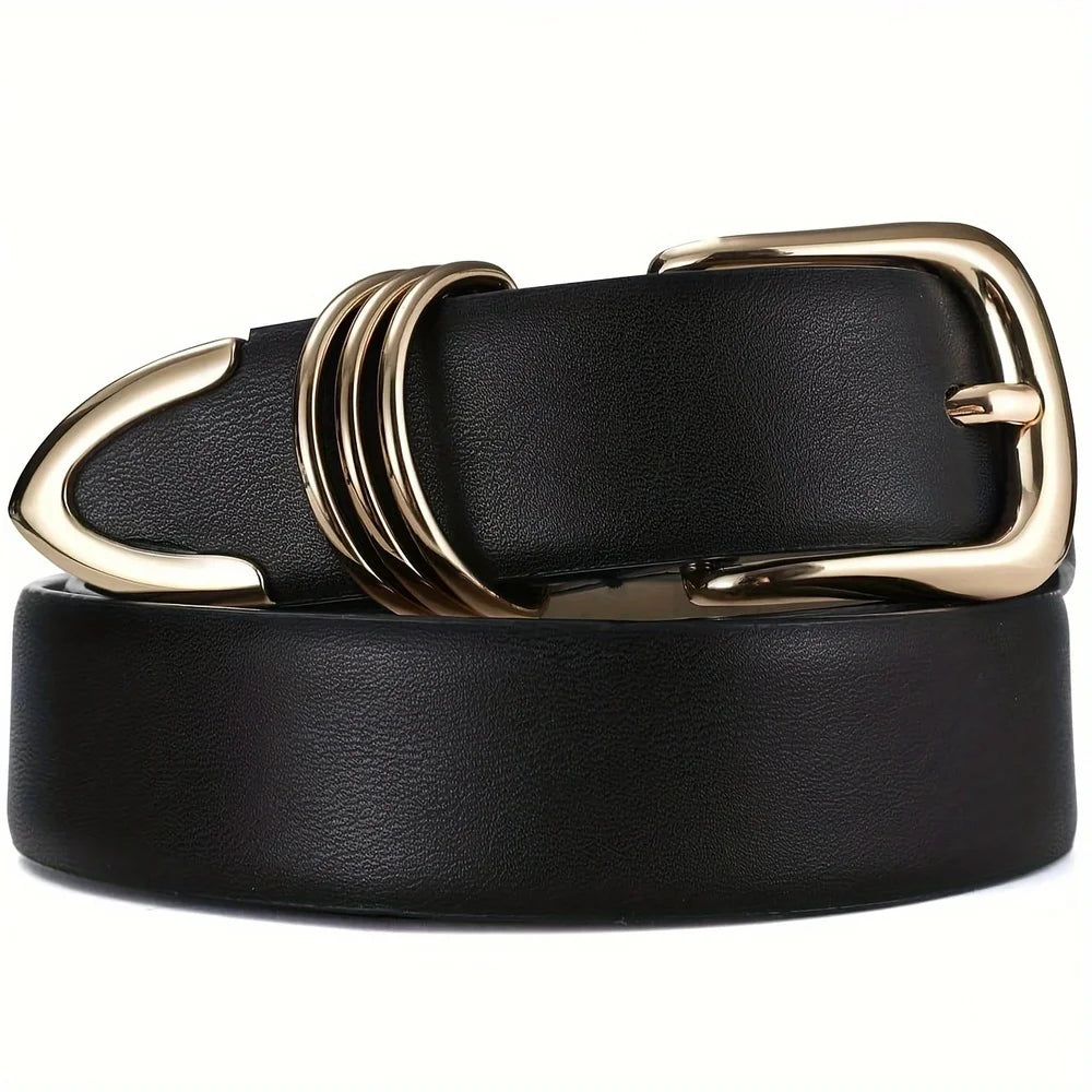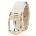 Women's Faux Leather Belt with Golden Oval Buckle - Adjustable Casual Belt for Jeans, Pants, Skirts - Durable Fashion Accessory