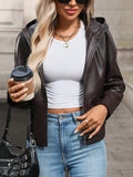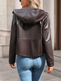 Women's Faux Leather Jacket Moto Biker Coat with Hood Motorcycle Jacket