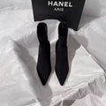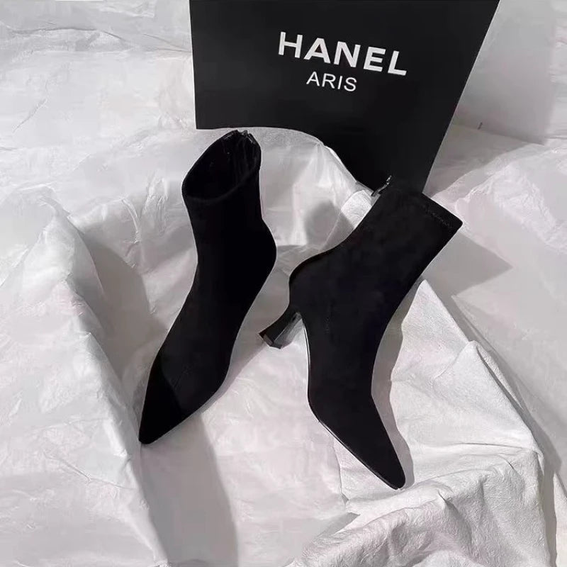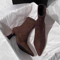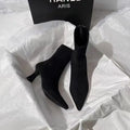 Women's high-heeled ankle boots for autumn and winter, versatile, French style, elastic, suede, pointed toe, fashion boots.2025