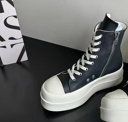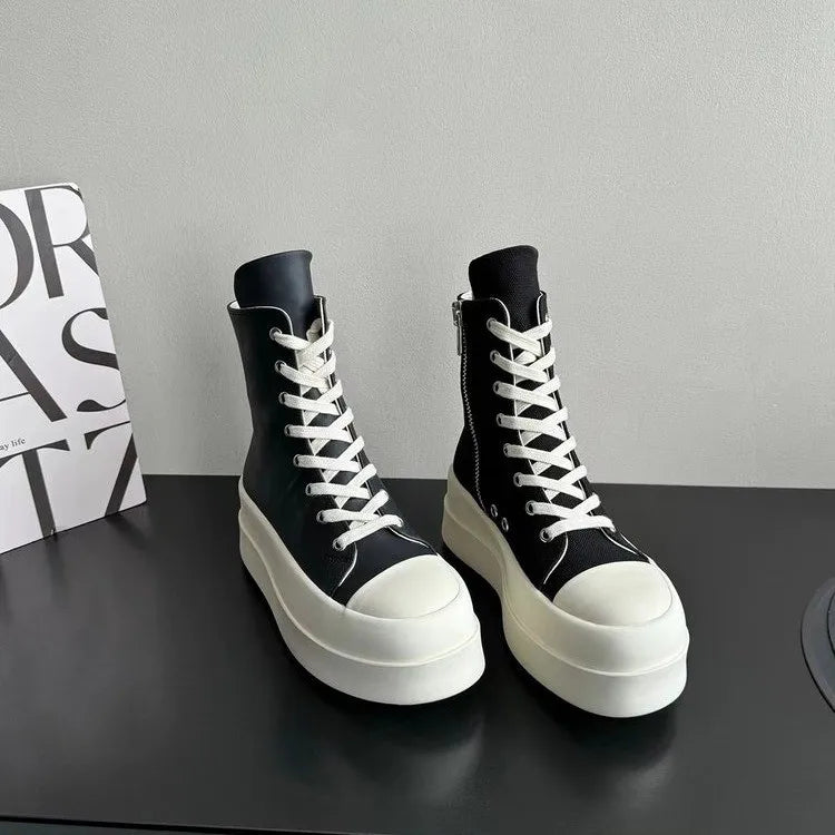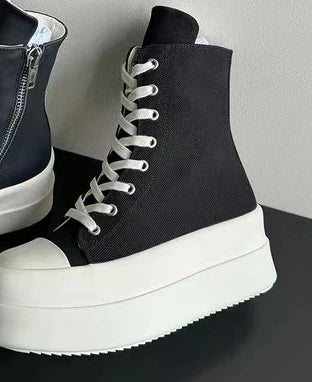 Women's high-top canvas shoes with thick soles and platform heels, new style 2025, trendy and casual sneakers for summer and aut