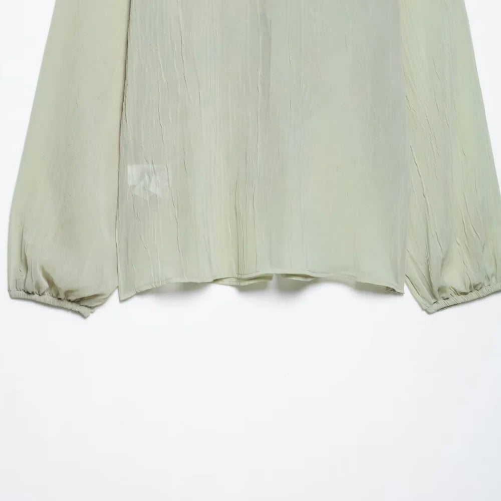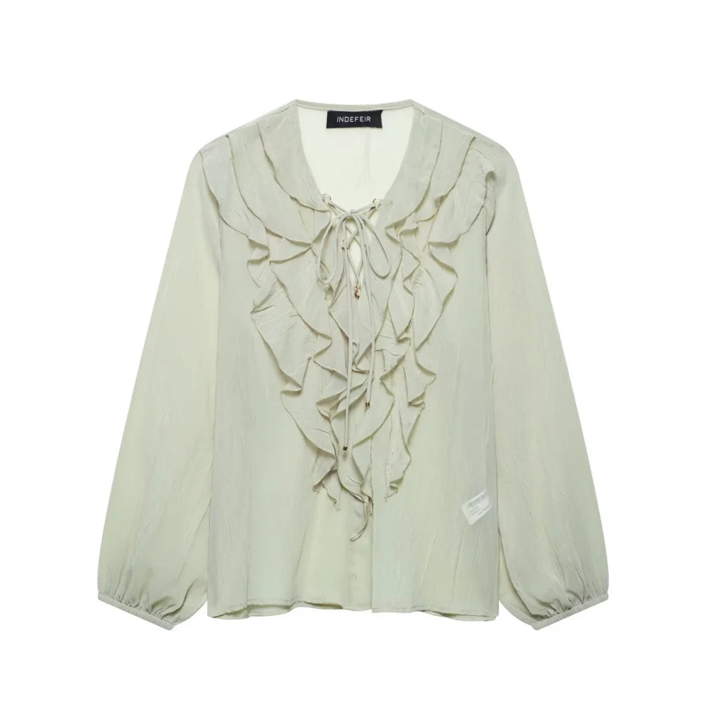 women's loose fitting collar shirt with round neck long sleeved buttons layered ruffle edge decoration lace up sprin