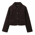 women's loose fitting top with collar long sleeves button pockets autumn and winter new style elegant cotton coat ja