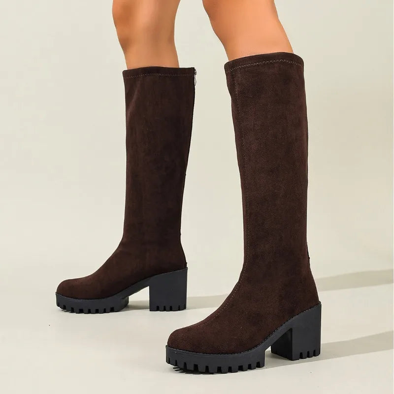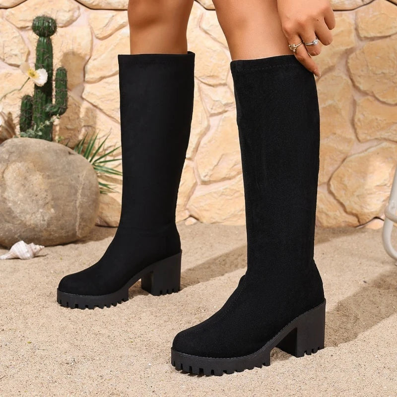 Women's new autumn and winter high boots, long boots, fashionable thick heel high heels, elastic boots with temperament.2025