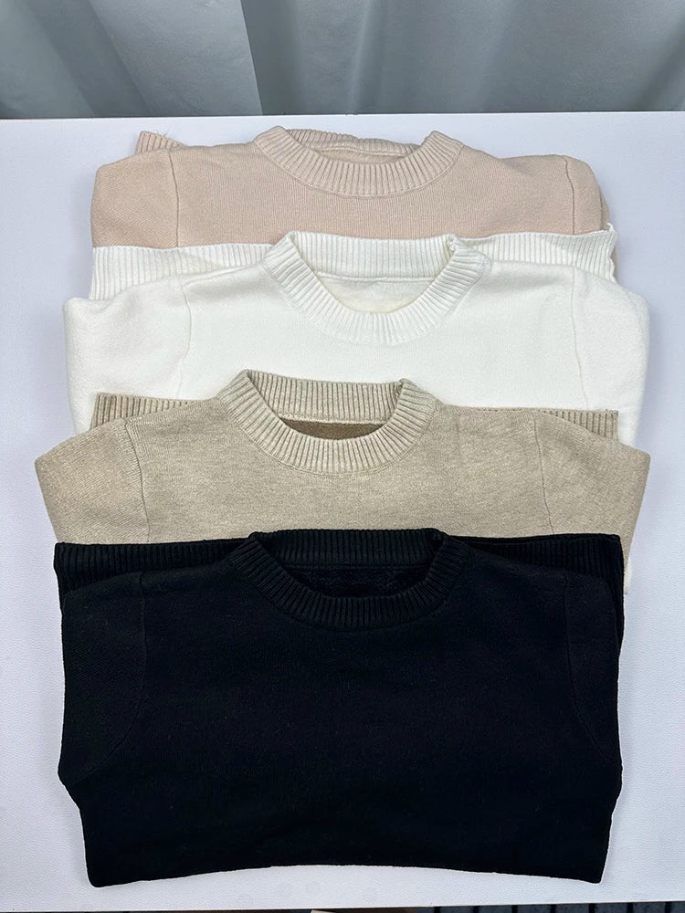 Women's O-neck Plus Velvet Thicken Sweaters Winter Slim Warm Long Sleeve Knitted Tops Casual Plush Fleece Lined Soft Pullover