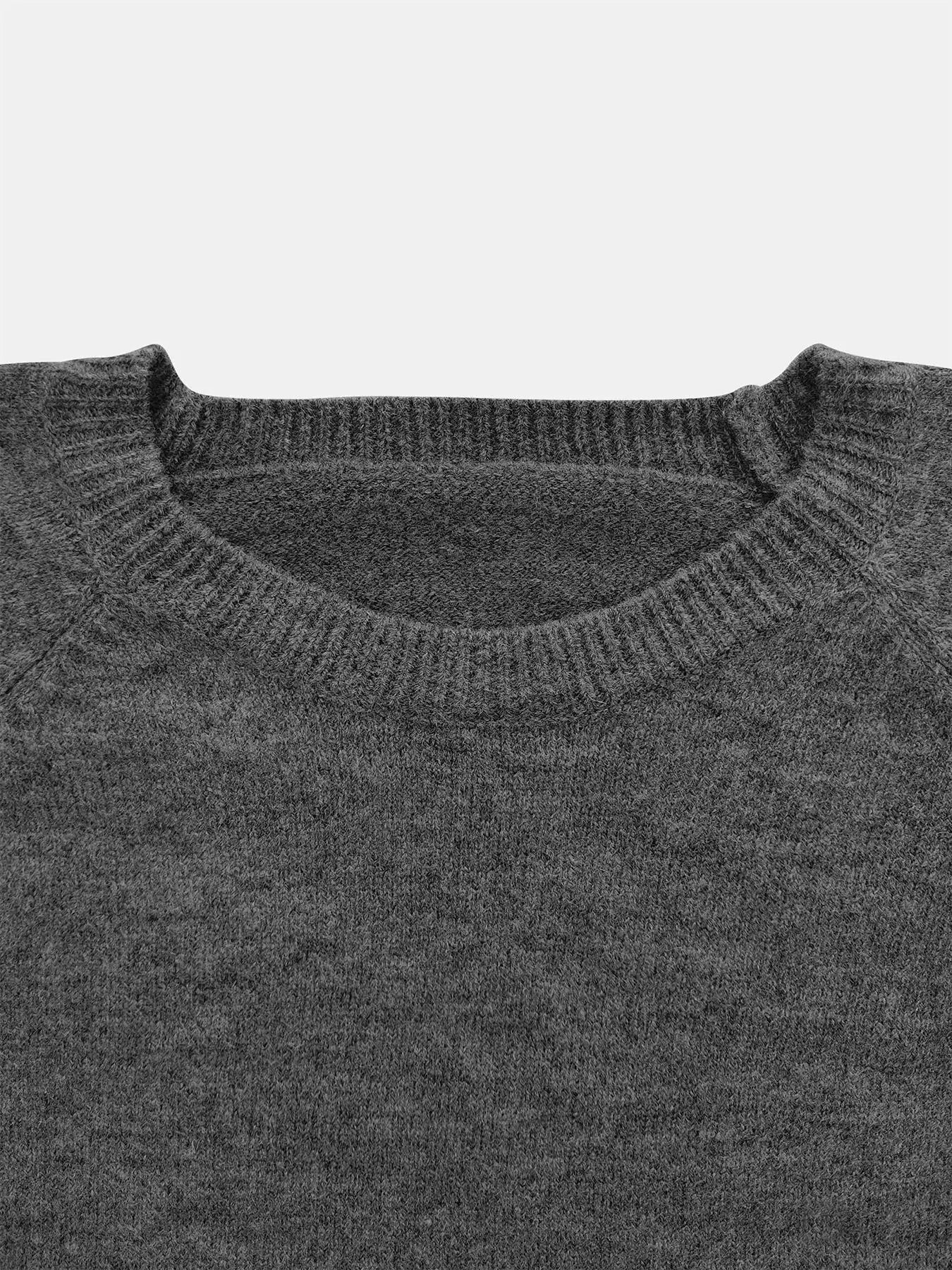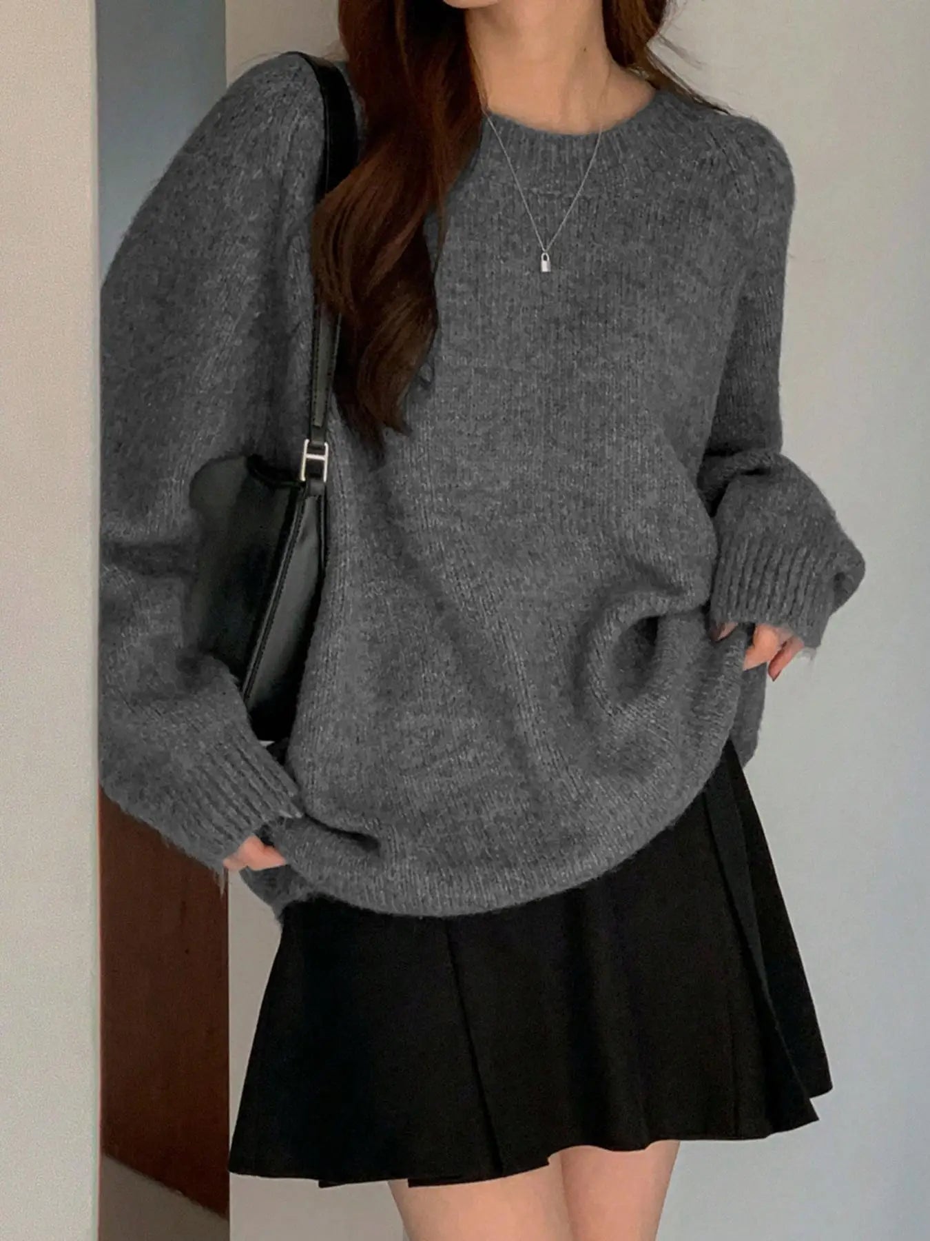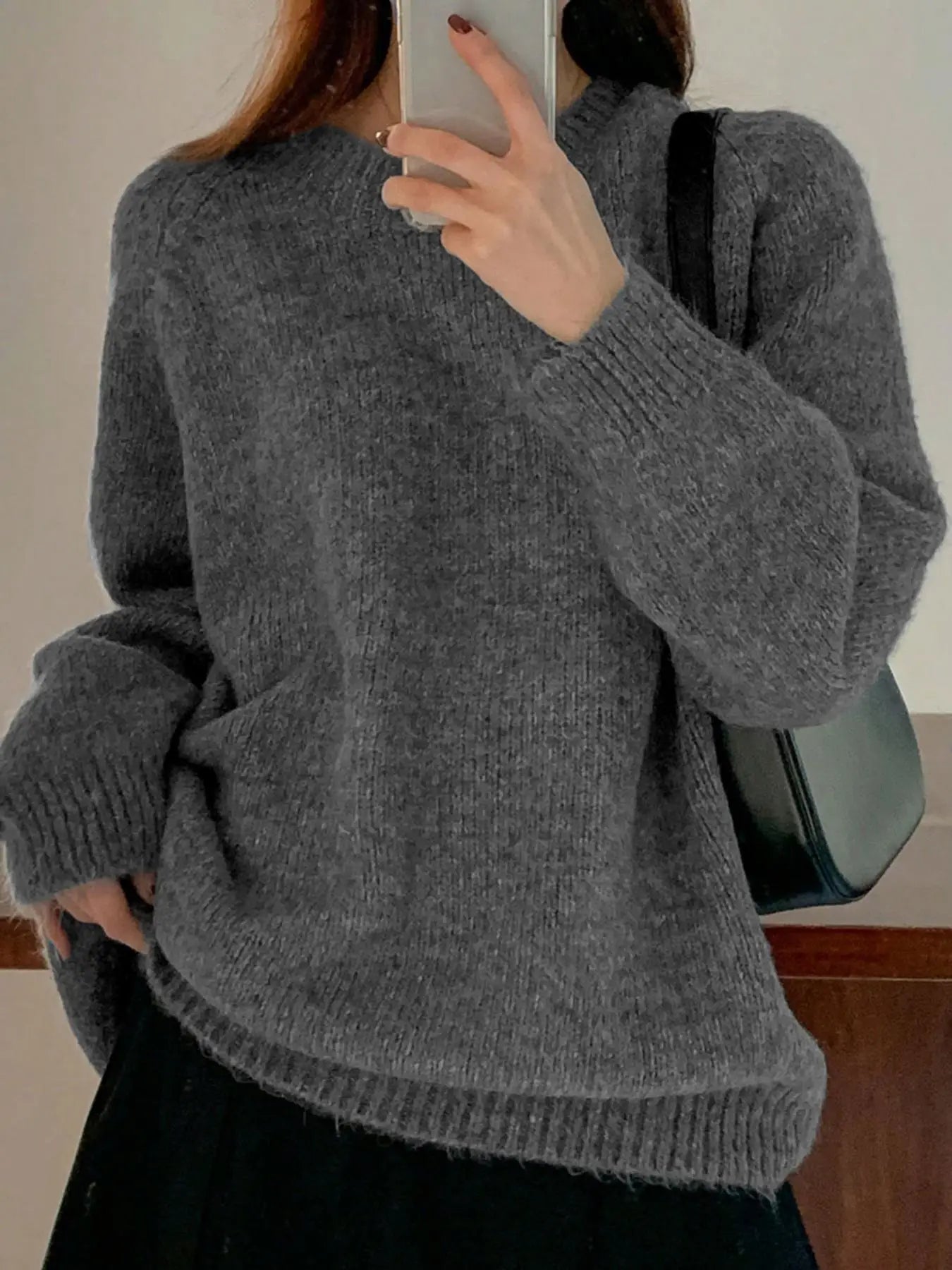 women's round neck solid color ribbed long sleeved simple, loose, lazy and fashionable woolen pullover top