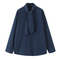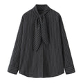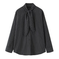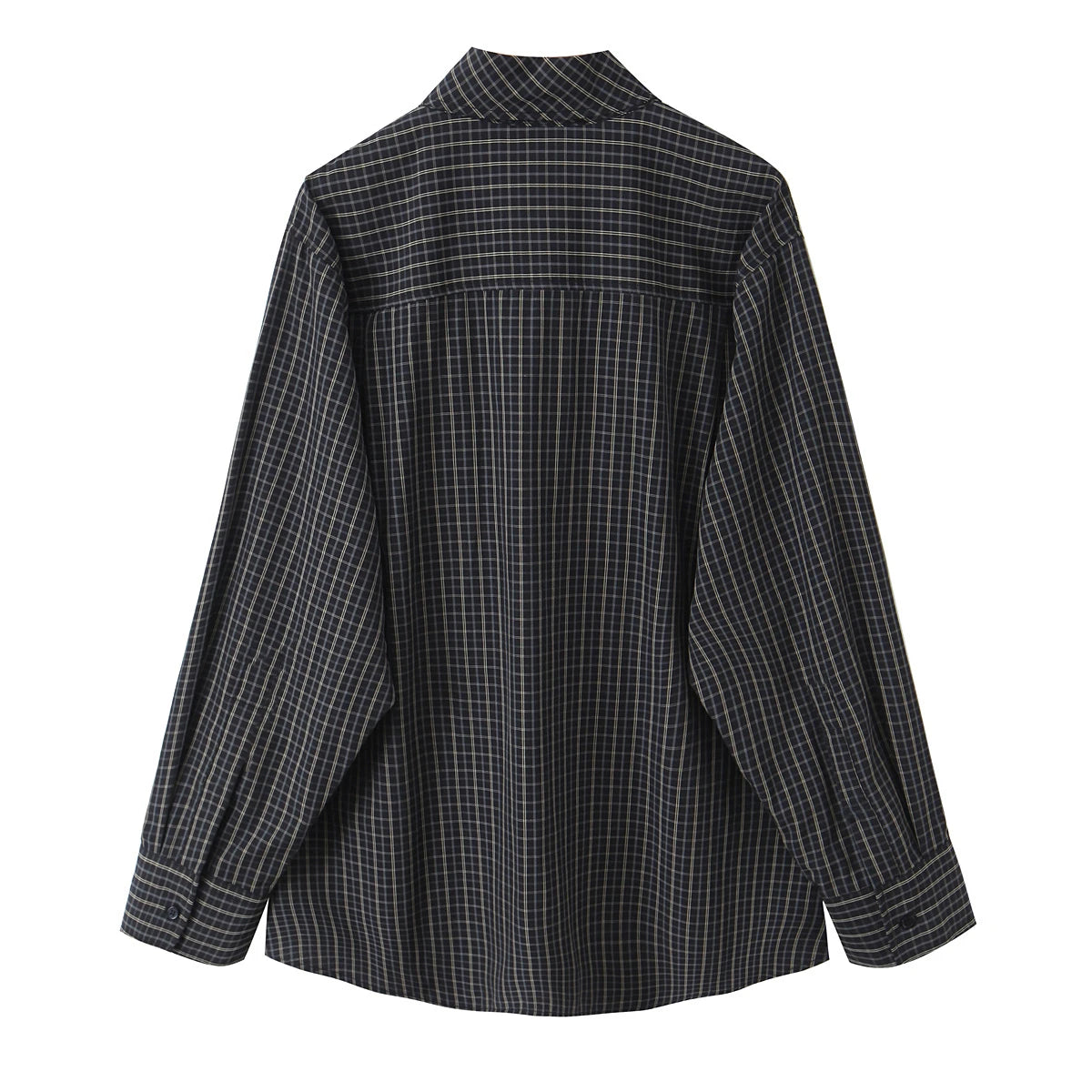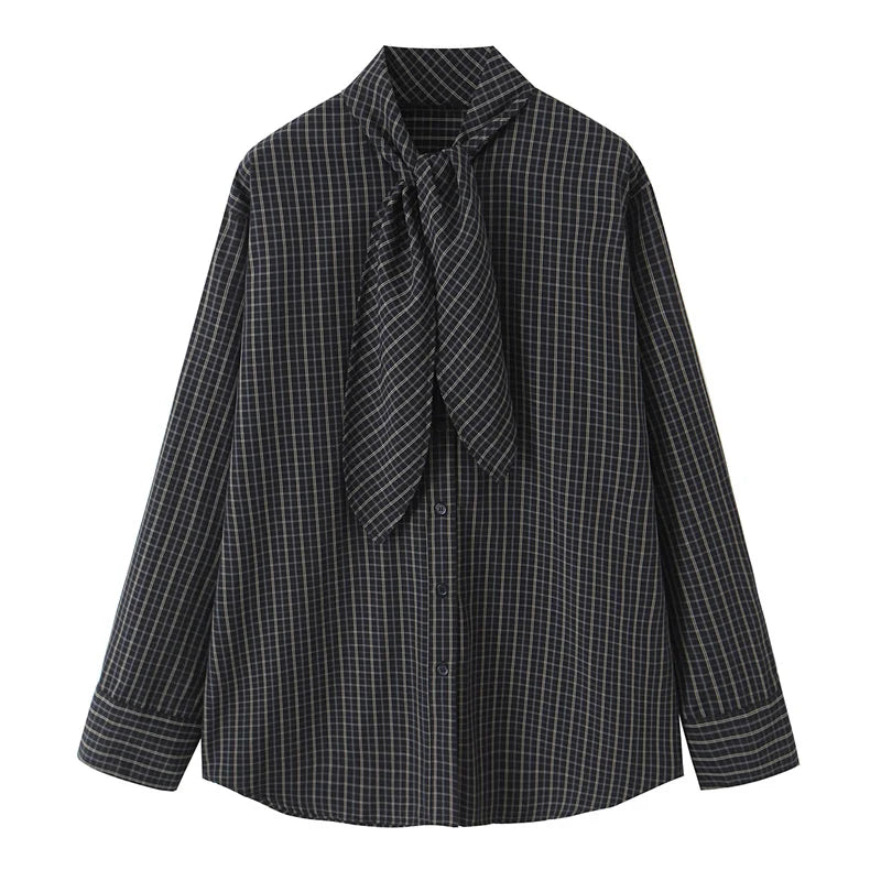 Women's Shirt 2025 Autumn New Arrival Dark Plaid Long-Sleeve Shirt with Scarf Decoration Loose Fit Casual Fashion Versatile