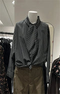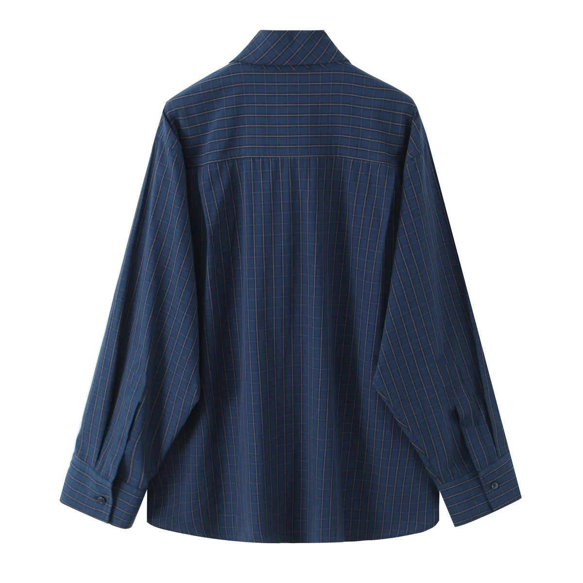 Women's Shirt 2025 Autumn New Arrival Dark Plaid Long-Sleeve Shirt with Scarf Decoration Loose Fit Casual Fashion Versatile