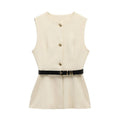 women's waistband vest round neck buckle decoration spring new product casual women's clothing