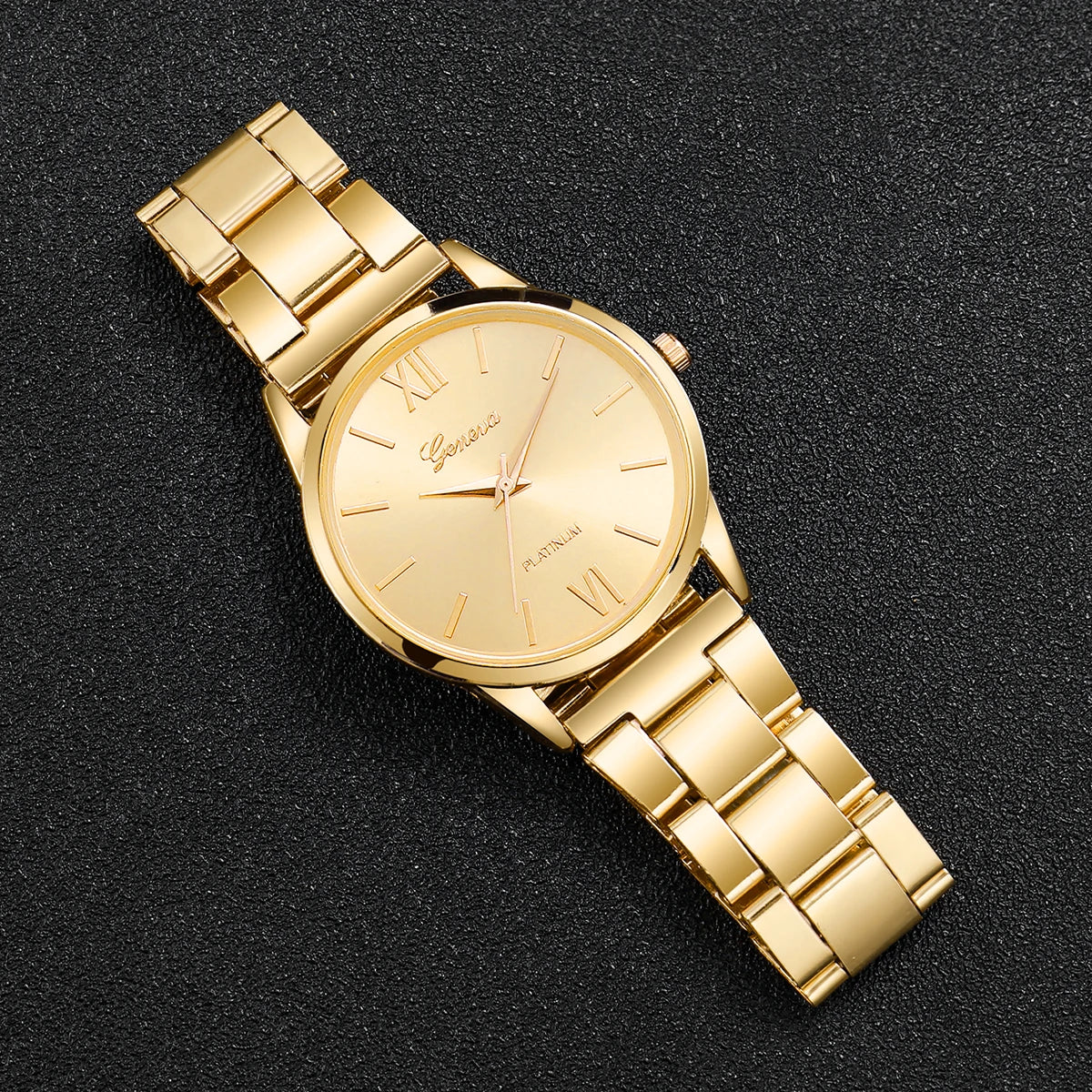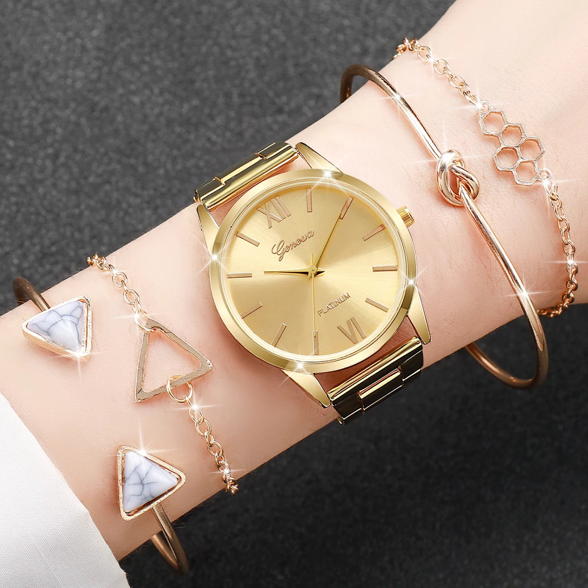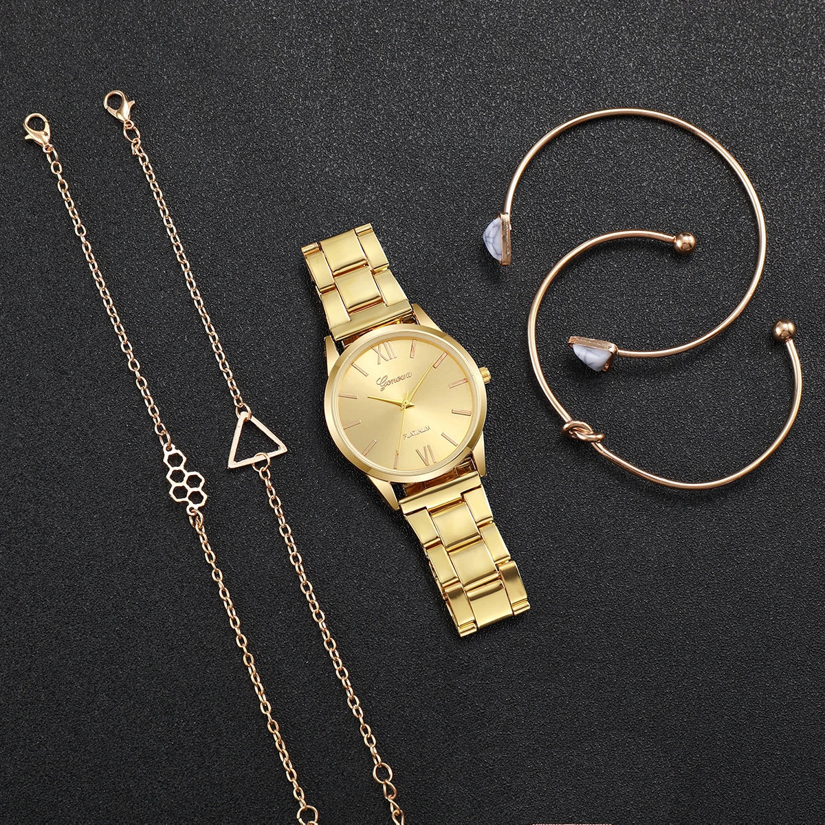 5PCS/Set Fashion Roma Dial Women's Watch Gold Steel Band Female Quartz Watches Bracelets Set