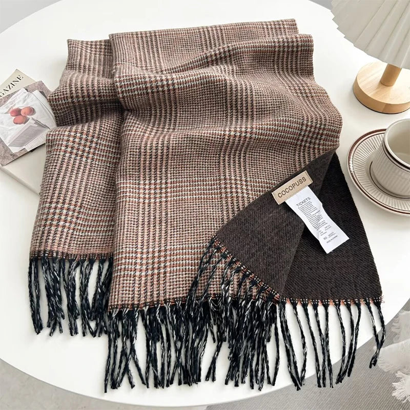 65*185cm Stripe Plaid Women Men Scarf Double Sided Imitation Cashmere Shawl Winter Pashmina Warm Wrap Foulard Neckerchief