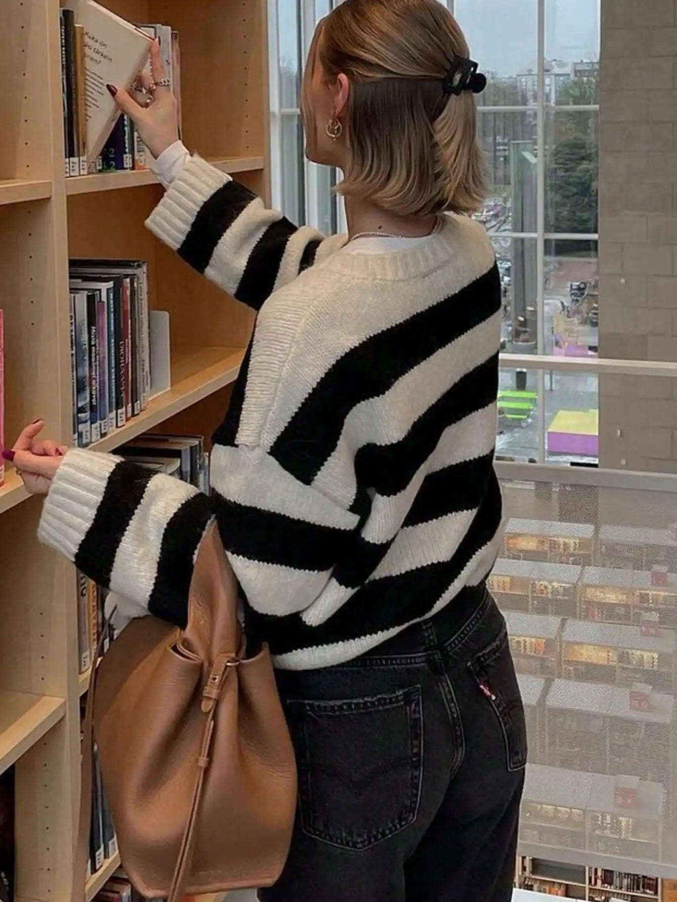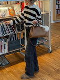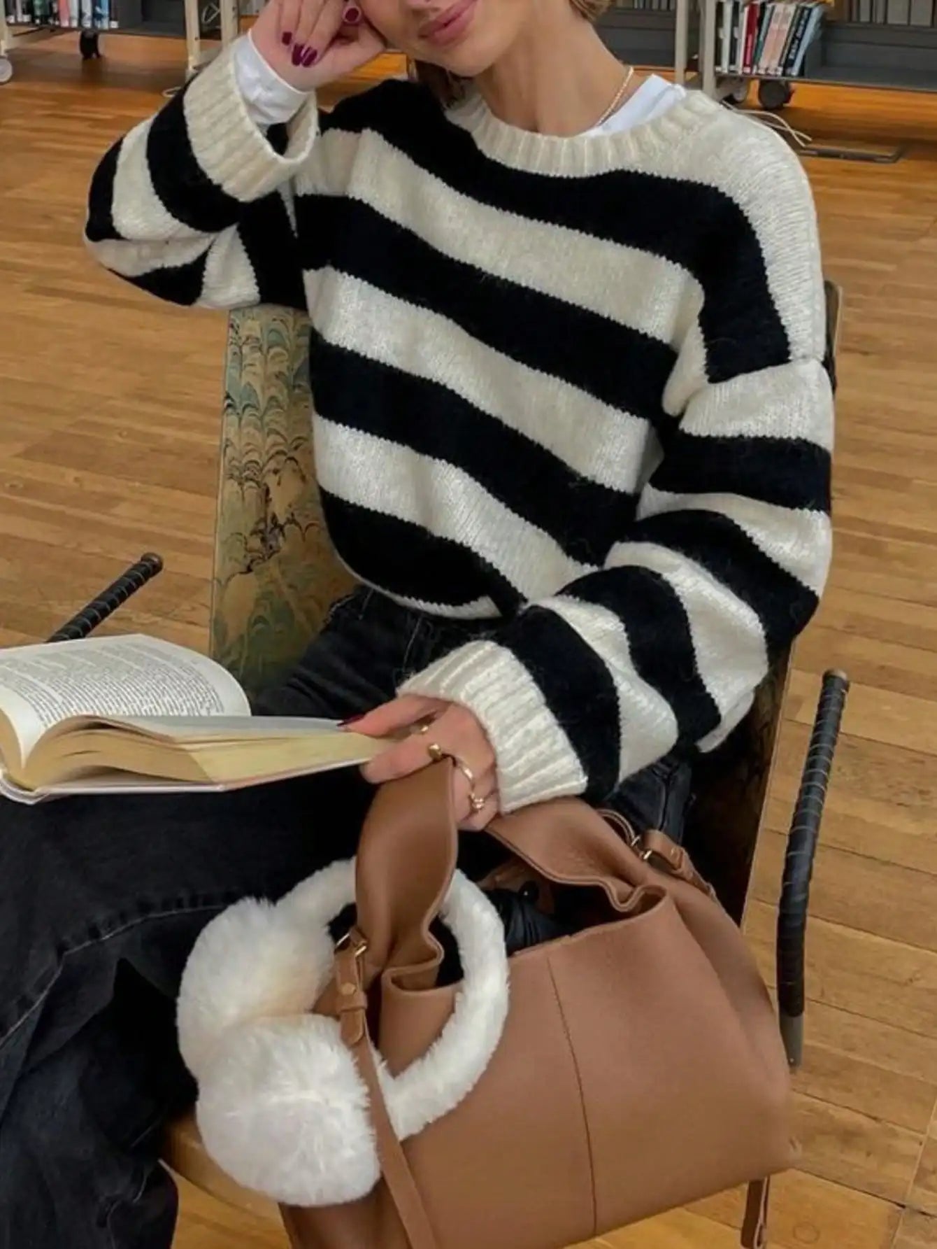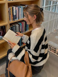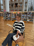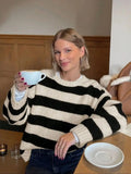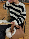 Autumn and winter women's round neck striped contrasting loose casual woolen pullover top