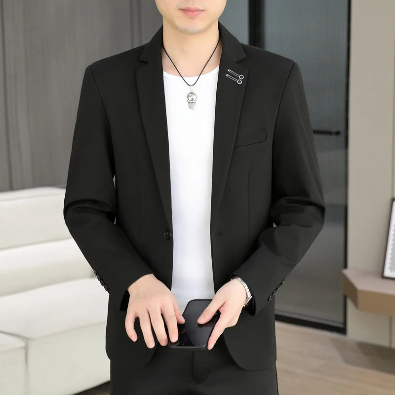 The new men's suit is a slimming and trendy solid color single Western-Korean style fashionable jacket for men