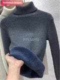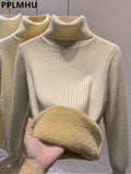 Thicken Plush Velvet Lined Knit Sweater Women Winter Slim Casual Warm Pullover Tops New Turtleneck Long Sleeve Knitwear Jumper