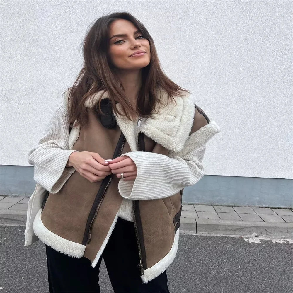 UNIZERA2023 High Quality Autumn/Winter New Women's Fashion Tri Color Fleece Panel Tank Top